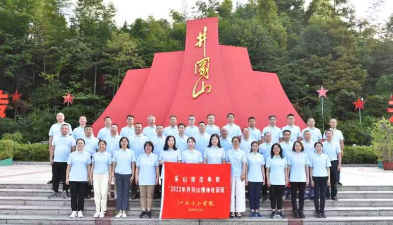 最后,谢彦波、彭尚源共同向全体学员授予了“乐山师范学院井冈山精神培训班”班旗。仪式结束后,全体学员同前往井冈山革命烈士陵园,向在井冈山斗争中牺牲的革命先烈们敬献花圈,聆听讲解员介绍井冈山革命烈士的故事。