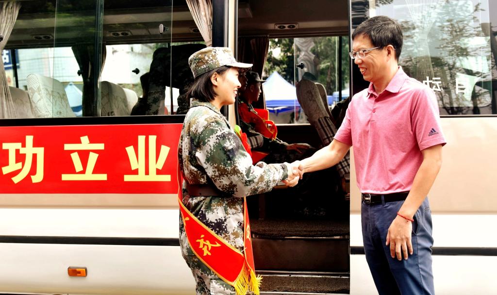 会上,贾洪鉴代表学校征兵工作站向长期关心、支持我校武装工作的乐山军分区、市中区人民武装部表示衷心的感谢,向参加入伍的新兵们表示崇高的敬意,向受表彰的军事理论课教师们表示热烈的祝贺。他寄语即将暂别大学生活,踏上新征程的新兵们早日成为“政治合格、军事过硬、作风优良、纪律严明”的优秀军人。希望新兵们时刻铭记“弘毅自强、笃学践行”的校训,用责任擦亮青春靓丽的底色、用行动诠释青年担当的本色、在军营中书写人生华彩乐章,传承母校家国情怀,为母校争光添彩。