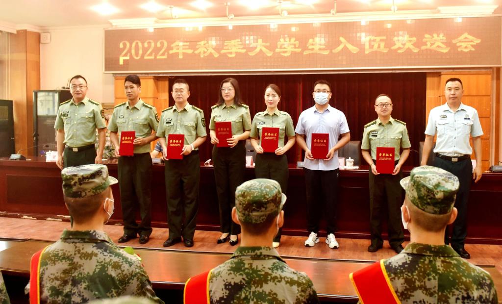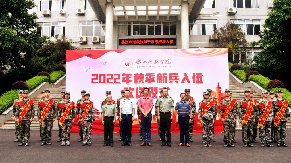 本网讯(文/杜鸿 图/徐凌云)参军报国,不负韶华。9月13日,我校在弘毅楼隆重举行2022年秋季大学生入伍欢送仪式暨首届军事理论课竞赛表彰会。学校党委常委、副校长李朝晖,乐山军分区动员处参谋廖博,学校党委武装保卫部部长贾洪鉴、校团委书记李东、党委学生工作部副部长南麒,教学院副书记、学生科长及征兵工作联络员,军事理论教研室全体教师和军事特长生代表参加了活动。会议由党委武装保卫部副部长梁光德主持。