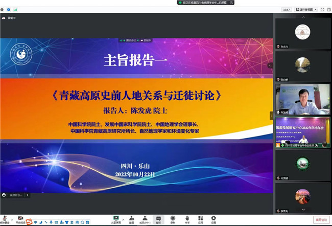 本网讯(文/王丽、唐印婷 图/陈东阳、张舜宇)10月21至23日,由四川省地理学会、乐山师范学院、四川旅游发展研究中心主办,乐山师范学院旅游与地理科学学院承办的“四川省地理学会暨四川旅游发展研究中心2022年学术年会”在乐山顺利召开。乐山师范学院党委副书记、校长刘进出席开幕式并致辞。省内外高校、科研院所及中学40多家单位近300位专家学者和乐山师范学院师生以线上、线下相结合的方式参会。会议由乐山师范学院副校长江滔主持。
