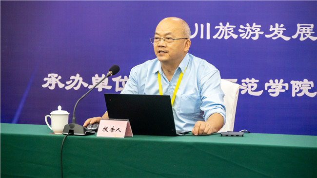 刘进对与会嘉宾的到来表示由衷的欢迎,并简要介绍乐山师范学院的办学理念、四川旅游发展研究中心、旅游与地理科学学院在科学研究、人才培养和服务社会等方面取得的可喜成果。他表示,本次学术年会以“县域经济高质量发展、文化名城(镇)与国家公园建设”为主题,必将激发领域内最前沿思想的碰撞,增进高校、科研院所和中学间的深入交流合作,助力新时代地理学、旅游学科高质量发展迈上新台阶,助力县域经济高质量发展取得新成效。