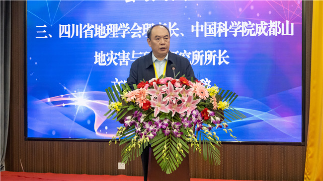 中国地理学会常务理事、四川省地理学会理事长、中国科学院成都山地灾害与环境研究所所长文安邦研究员代表省地理学会致辞。他指出“科教强国”政策有利于推进社会、科学的发展,呼吁全体参会人员要深入学习贯彻党的二十大报告的内涵和深远意义,以党的二十大精神为引领,潜心科研、潜心教育,扎实推进全省科研发展、人才培养,互相合作交流,共同描绘地理科学发展新蓝图。