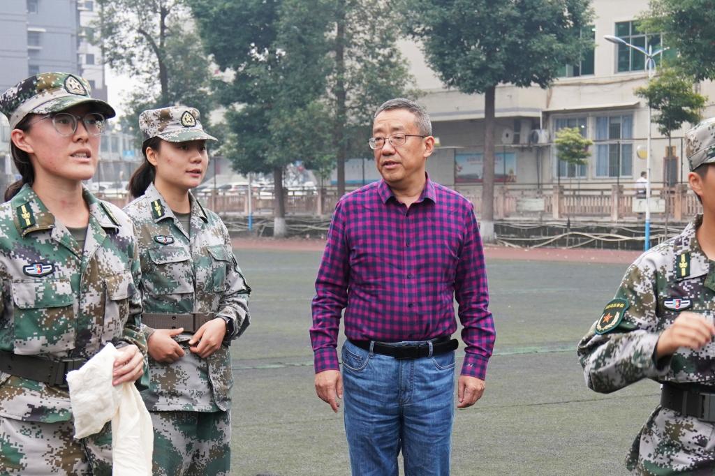 在北校区军训现场,校党委副书记、校长刘进慰问了部分带训的军事特长生教官,对他们在训练中表现出来的过硬本领和坚强意志表示肯定。刘进希望参训学生在军训中心怀家国、甘于奉献,强健体魄、磨炼意志,精诚团结,互助友爱,早日成长为合格的乐师人。