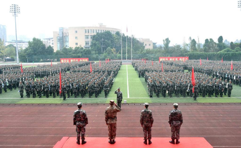 “大家有没有信心?”军训团团长的声音响起。“有!”肯定回答的声音冲破云霄。整齐的队伍、严明的纪律,志气高昂、飒爽英姿的学员们就这样开始了磨练的征程!