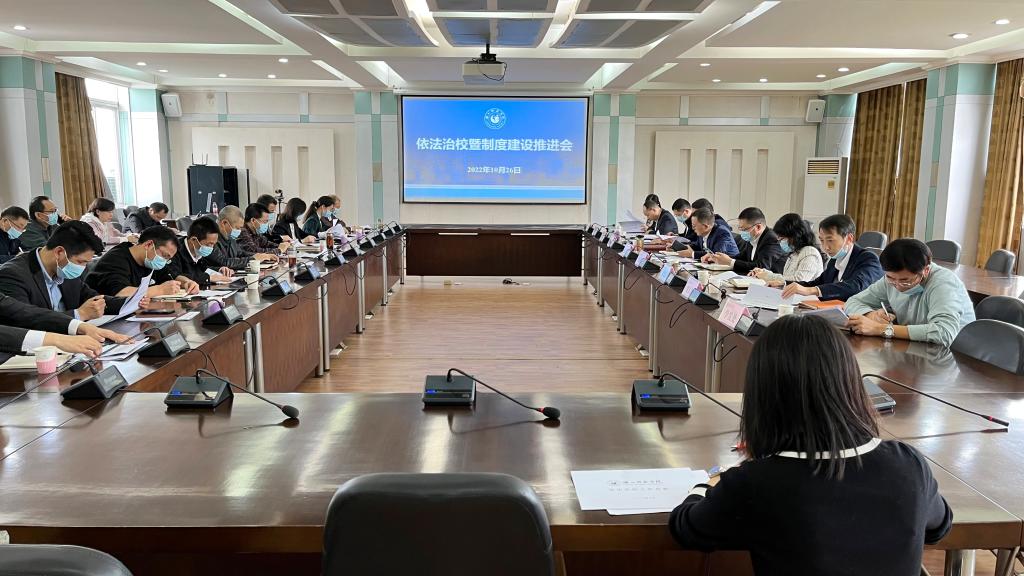 党政办、党委组织部、党委宣传部、党委教师工作部、党委学生工作部、校工会、学科建设与发展规划处、科研部等相关部门负责人在会上分别汇报了依法治校工作和制度建设推进情况。