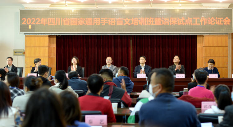 戴梅、吴军先后发言,他们感谢四川省残联、乐山师院对全省聋人、盲人朋友的关爱、支持与帮助,本次培训班暨论证会的举行,是上下高度重视并克服各种困难的结果。希望各位学员充分认识到本次培训和论证的重要性,以认真负责的态度,积极参加学习讨论,在学习中互帮互助,共同进步。各位学员还要学以致用,不仅将学习到的国家通用手语和通用盲文的知识、技能运用于自身的学习、生活、工作之中,还要自觉承担起宣传推广手语和盲文的责任,做宣传推广的先行者、排头兵。