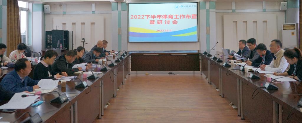 本网讯(文、图/熊仪)11月2日,我校在弘毅楼第一会议室召开了2022年下半年体育工作布置暨研讨会,校党委常委、副校长李朝晖、相关职能部门领导、各教学院副书记参与了此次会议,会议由体育学院院长张峰主持。