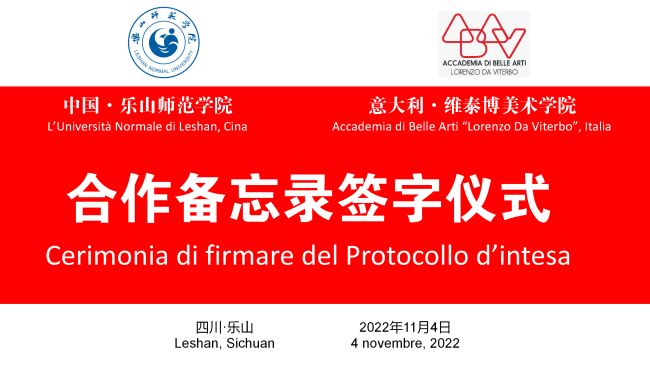 随后,汪天飞代表乐山师范学院、路易吉代表维泰博美术学院共同签署了校际合作协议。