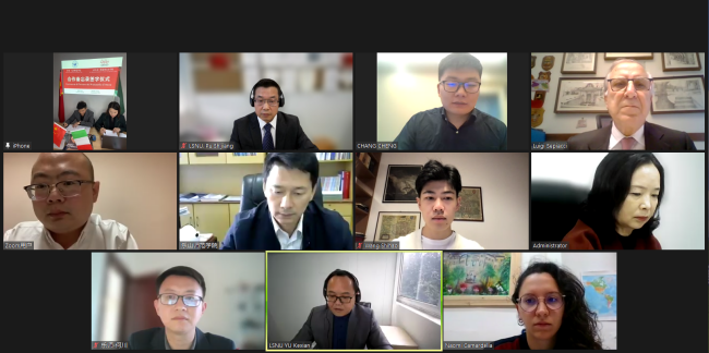 本网讯(文、图/蒲仕江)2022年11月4日,我校与意大利维泰博美术学院就两校校际合作举行了在线签署协议仪式。副校长汪天飞、维泰博美术学院院长路易吉分别代表校方出席并致辞,我校国际合作与交流处、美术与设计学院以及维泰博美术学院中国区负责人、重庆意翔成宣教育科技有限公司领导参加了签字仪式。会议由我校国际合作与交流处处长于科先主持。