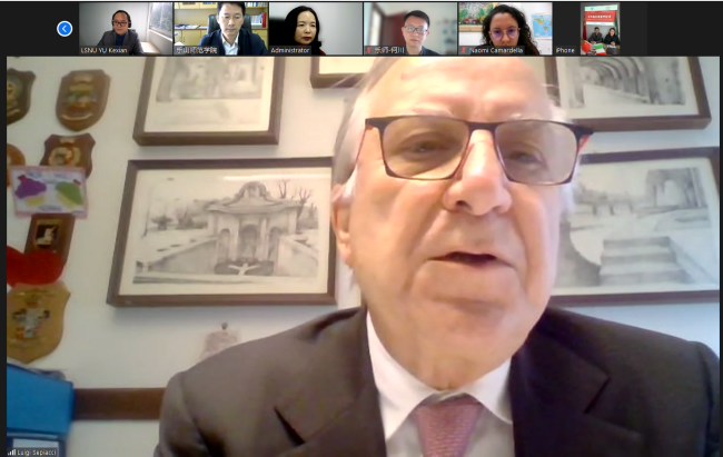 会议首先邀请意大利维泰博美术学院院长路易吉致辞并介绍学校整体情况。路易吉介绍了维泰博美术学院的建校历史、学历层次、优势学科、学生生源国结构等。路易吉表示,维泰博美术学院每年都要接收很多的中国留学生和交换生,很荣幸能与乐山师范学院开展交流与合作,并希望两校能尽快推进具体合作事项的落实。