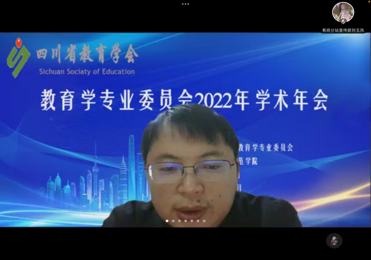 11月5日下午,举行了第二阶段的学术交流,主会场由绵阳师范学院王涛教授、乐山师范学院唐前军教授、泸州职业技术学院潘绿萍教授、乐山师范学院吴永胜博士、内江师范学院王建博士、阿坝师范学院教师王亚、西华师范大学硕士研究生熊丽进行了主题发言,分别以“从全科视野到全科思维:全科型卓越教师的专业发展特征 ”“信息技术教育的高质量发展问题”“高职院校美术类公共选修课体系建设策略研究”“试论教育高质量发展的三个基本问题”“‘双减’背景下中小学课后服务质量评价指标体系的构建”“高质量发展视域下国内羌区教育研究热点主题与前沿研究” “高校劳动教育与心理健康教育融合发展研究”为题进行了报告。
