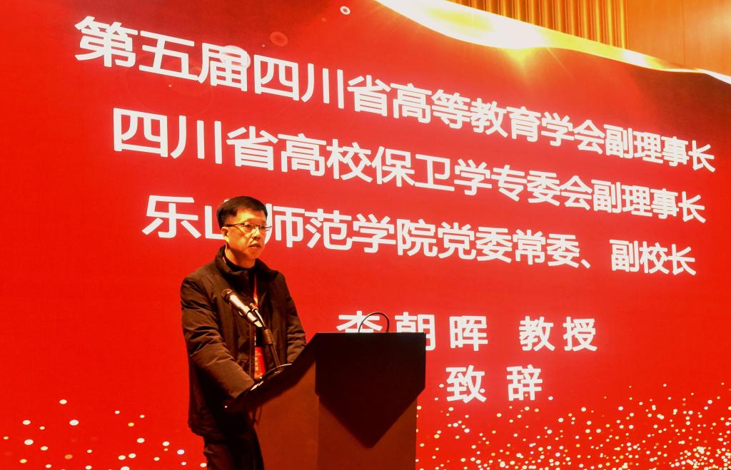 本网讯(文/何甜 图/徐凌云)12月14日-16日,四川省高校保卫学专委会2022年学术年会暨第十届理事会换届大会在成都东安湖木棉花酒店隆重召开。四川省高校保卫学专委会副理事长、学校党委常委、副校长李朝晖教授出席会议并代表四川省高等教育学会致辞。