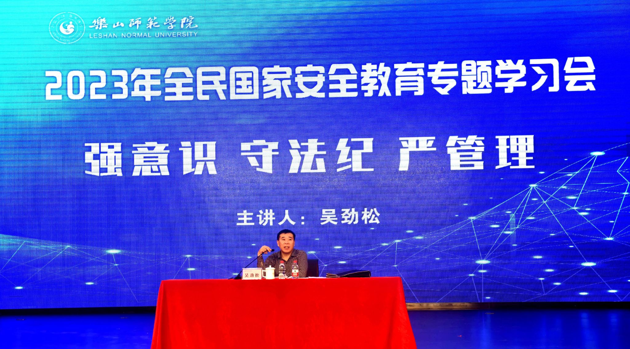 讲座中,乐山市委办公室吴劲松从保密工作基础知识出发,旁征博引、剖析案例,对保密工作遇到的新形势、新任务、常见问题及防范等内容作了深入浅出的讲解,拓宽了师生保密知识面,起到了警钟长鸣、防微杜渐的效果。
