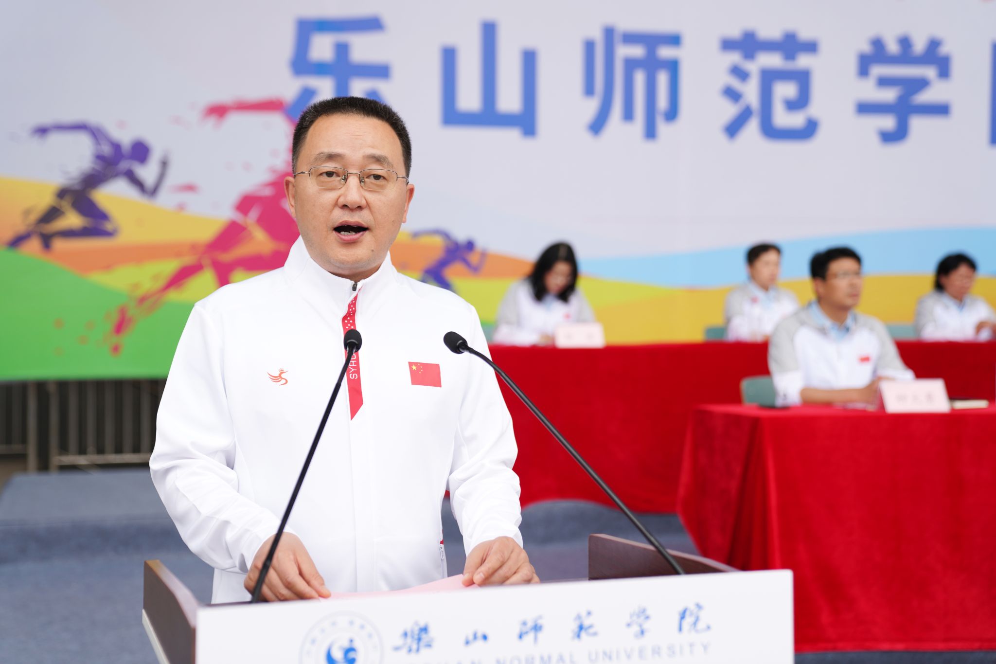校党委副书记、校长刘进致开幕辞。他首先代表学校对此次运动会的举办表示了热烈的祝贺,向筹备此次盛会的全体工作人员表示了衷心的感谢,向全体运动员、裁判员致以了诚挚的问候。