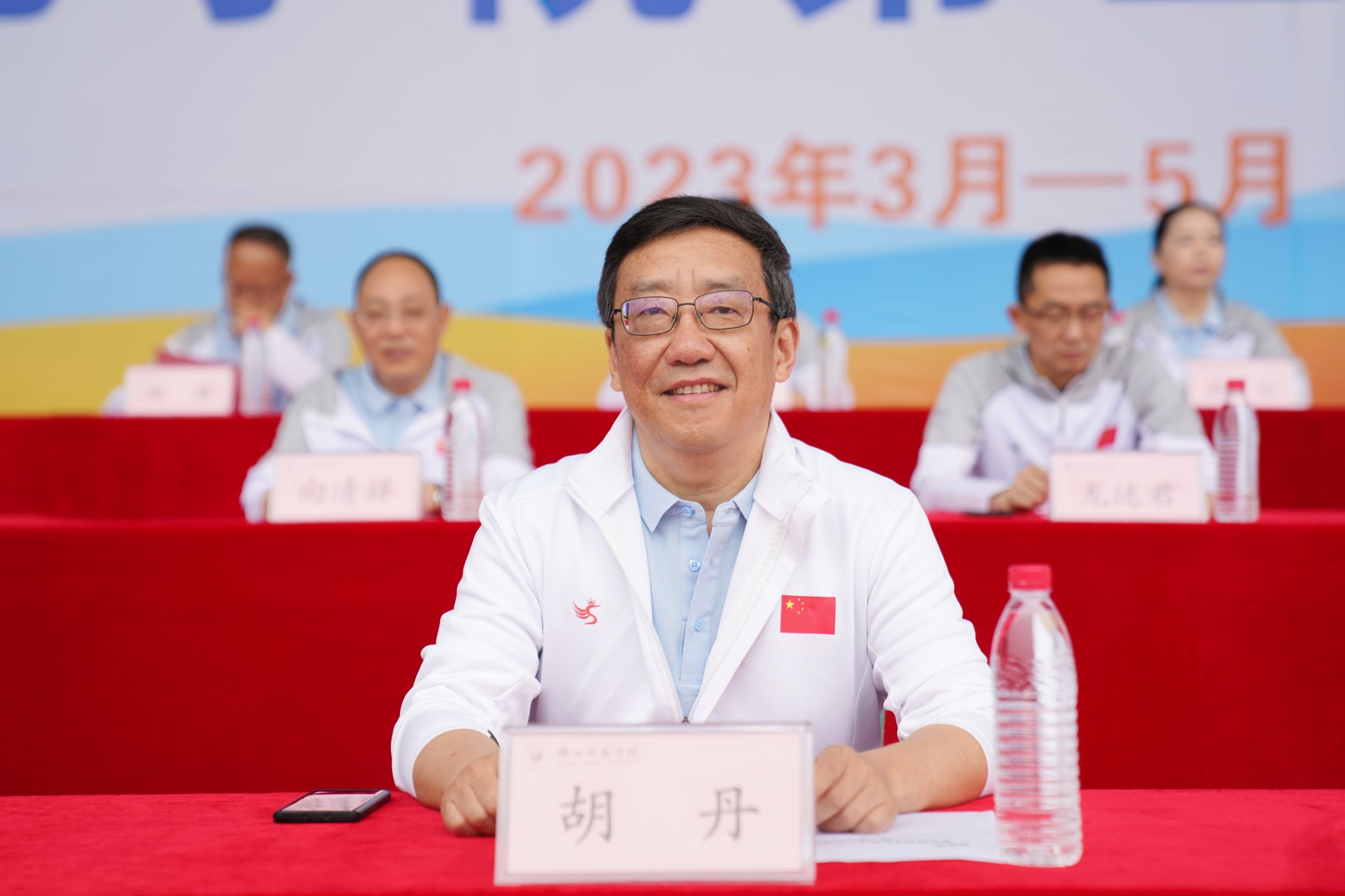 在全场热烈的掌声中,校党委书记胡丹宣布本届运动会开幕。