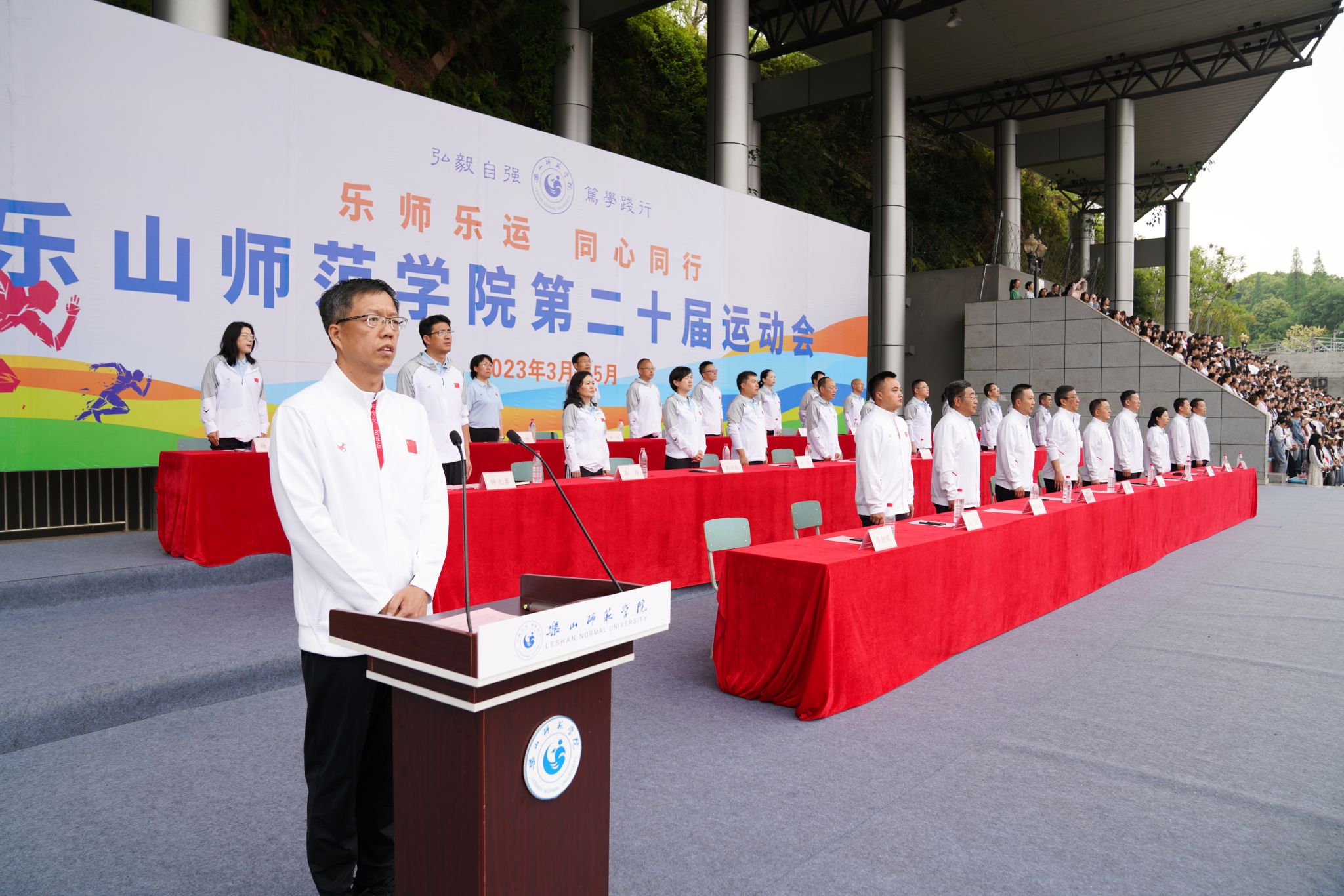 刘进指出,在45年的办学历程中,我校始终坚持全面贯彻党的教育方针,始终牢固树立健康第一的体育教育理念,始终致力于提升学生体质健康水平。自第四次党代会以来,学校在“1329”发展战略引领下,强化人才培养质量,努力构建德智体美劳“五育并举”的人才培养体系。体育作为“五育”之一,是培养社会主义建设者和接班人的重要环节,是开展高质量学习和工作的重要基础。因此,我校坚持把体育作为“五育并举”的重要立足点,作为“三全育人”的核心交汇点,作为立德树人的关键支撑点,在体教融合发展路径中不断强化体育的育人功能。此次运动会展现了我校体育发展的优秀成果,体现了全校师生积极向上的体育风貌!