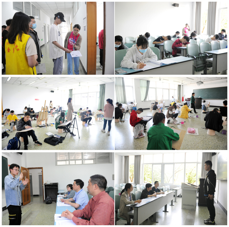 早上8:00前,考务工作人员、监考教师在符合保密规定前提下完成了试卷转运、清点、交接和领取工作,8:00考生开始进入考场,8:30准时参加第一趟考试。上午的《语文》《数学》考试、下午的《素描》《色彩》考试在全体工作人员紧张忙碌且有条不紊的工作中圆满结束。下午的面试分本、专科先后进行,考生们个个收拾心情、跃跃欲试,有的更换服装,有的带上道具,有的手握获奖证书,有的端着绘画、剪纸作品……在志愿者的引领下依次参加面试,考场上,考官们严格按规定提问考生,借助手语与考生充分交流,激发他们充分展示自己的知识储备、人文素养、优势特长、价值取向等,至下午18:00所有考生的面试全部结束。