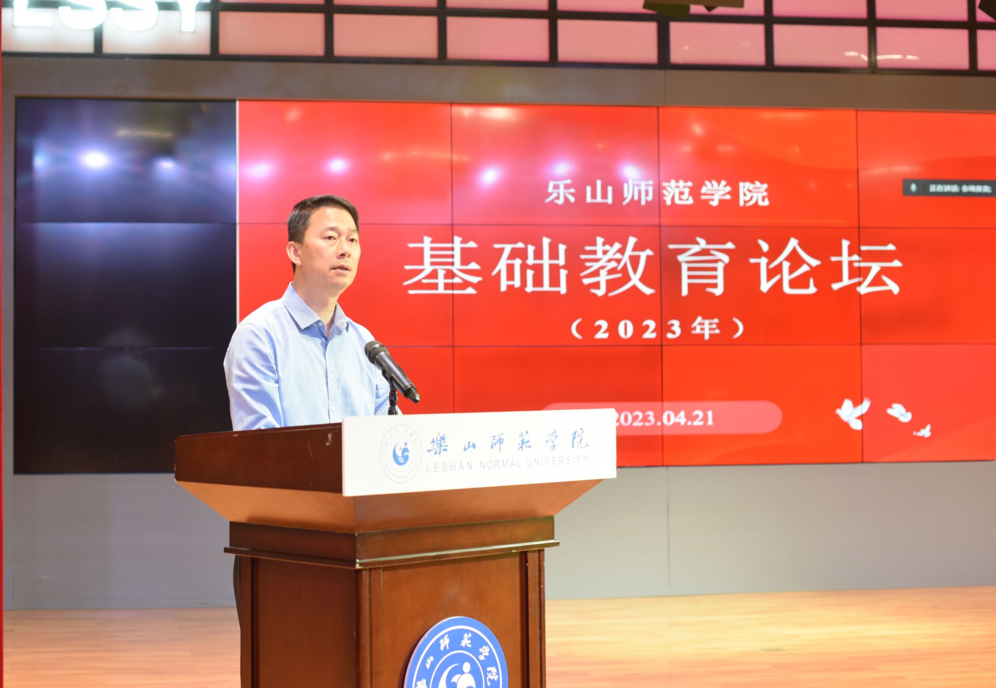 本网讯(文、图/章含颖)4月20日,在学校举办高等教育45周年之际,由教师教育学院主办的“乐山师范学院2023年基础教育论坛”在旷怡楼学术报告厅隆重举行。乐山市教育科学研究所领导、教育实习基地学校领导与教师、师范专业学院副院长、师范专业负责人、学科教学论教师、师范生代表出席了此次会议。会议由汪天飞副校长主持。