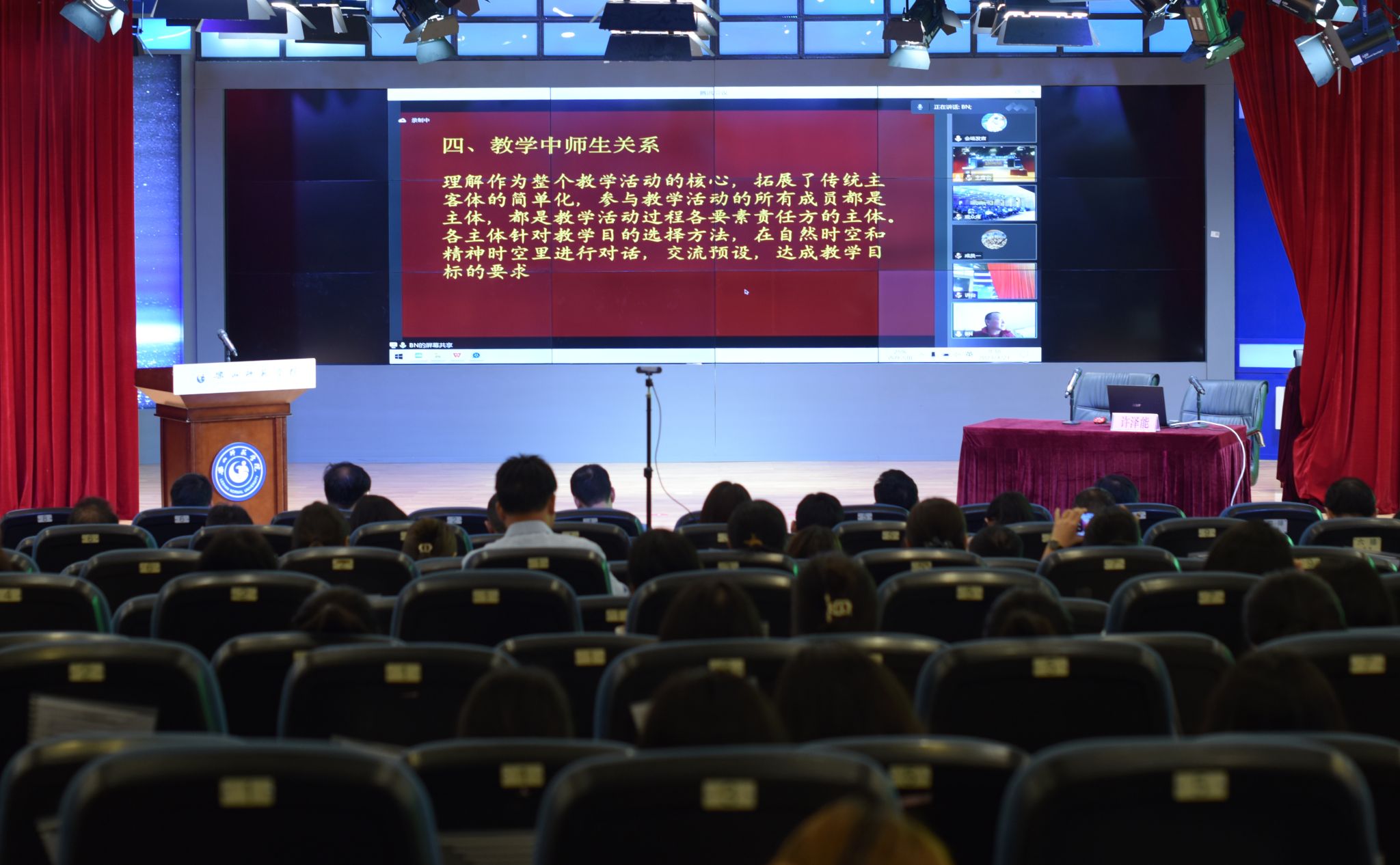 华东师大课程与教学研究所教授、博士生导师吴刚平以“素养导向教学的知识观基础”为题作了视频专题讲座。他针对知识建构理论与知识传递理论的利与弊,分析了知识分类、学习方式与课堂转型之间的关系,并将其概述为“记中学、做中学、悟中学”三个层次,提升了与会嘉宾就核心素养背景下理解教学知识理论转型的深度和广度。