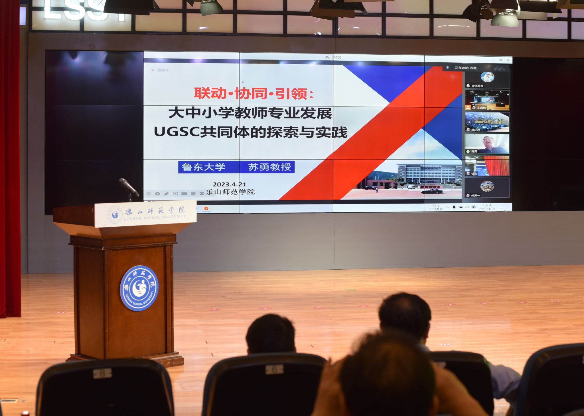 原鲁东大学教师教育学院院长苏勇为大会作了“联动、协同、引领:大中小学教师专业发展UGSC共同体的探索与实践”在线专题讲座。他详细地介绍了以高校专家团队为策划引领、教育行政部门组织协调、教育科技公司提供资源支持、中小学教师积极参与的教师专业发展“四位一体”共同体模式。