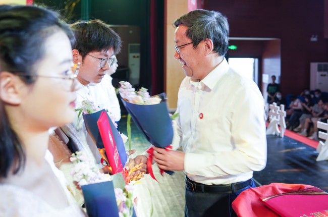 学校党委常委、副校长李方裕,学校党委常委、副校长汪天飞,学校党委常委、副校长江滔,为2022年度在共青团工作中表现优异,取得突出成绩的集体和个人获奖代表以及优秀退役大学生进行颁奖。