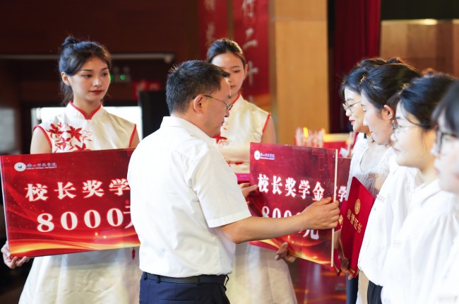 学校党委副书记、校长刘进为2023年“校长奖学金”获得者颁奖。校长奖学金是学校设立的最高奖学金,意在广大学子秉承着“弘毅自强,笃学践行”的校训,用行动诠释新时代青年的有为姿态。