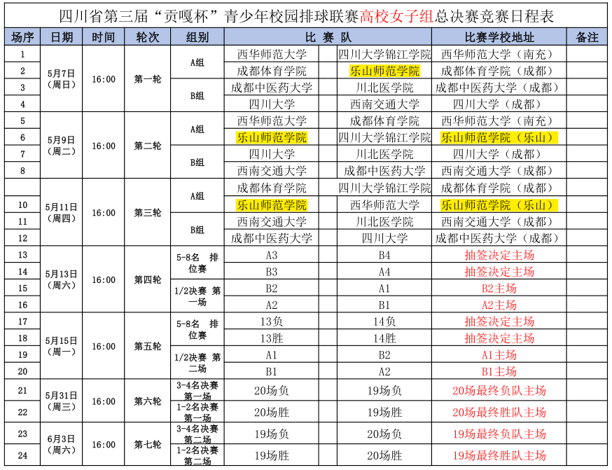 附件:四川省第三届“贡嘎杯”青少年校园排球联赛高校女子组总决赛竞赛日程表
