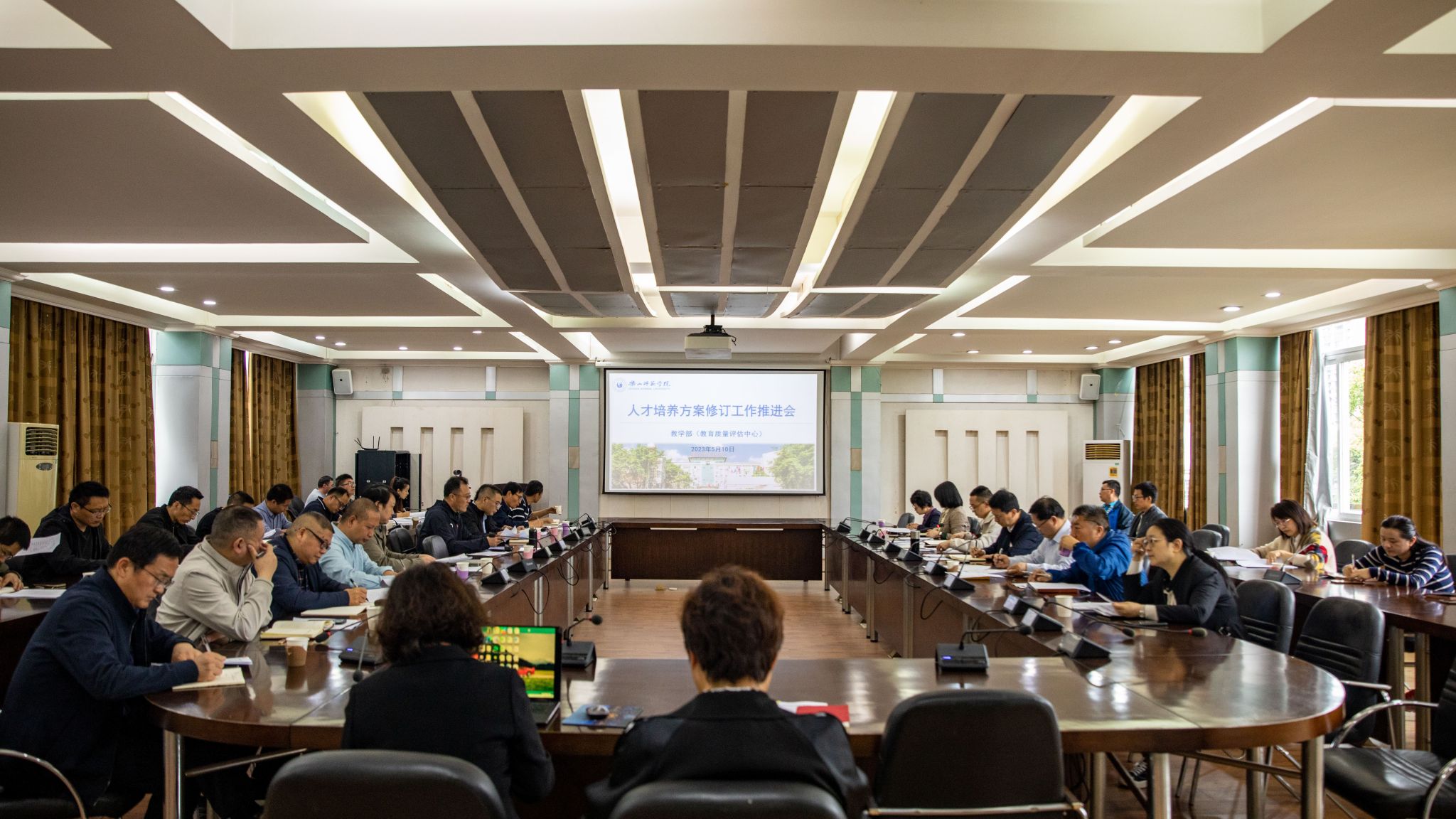 汪天飞强调,各学院要把握时代精神、落实党的教育方针、立足学校特色及优势、坚持产出导向,制定科学合理、与时俱进的培养方案。一是要广泛调研、充分论证,摆事实、讲案例、论数据,精准定位人才培养目标;二是要合理分解毕业要求,实现“可评、可测、可达”;三是要优化课程体系,课程体系是本科人才培养方案设计的重中之重,要以“三个支撑”为主线,将反向设计与正向施工紧密结合;四是要充分体现改革理念,持续推进“三化五融合”改革、深入实施“五育并举”改革方案;五是要求各学院实施“一把手”工程、积极组织专家团队、开展专题研究,切实下大气力做好新版培养方案的修订工作。此外,汪天飞对审核评估建设工作、规范实践教学管理也作出了相应的工作指示。