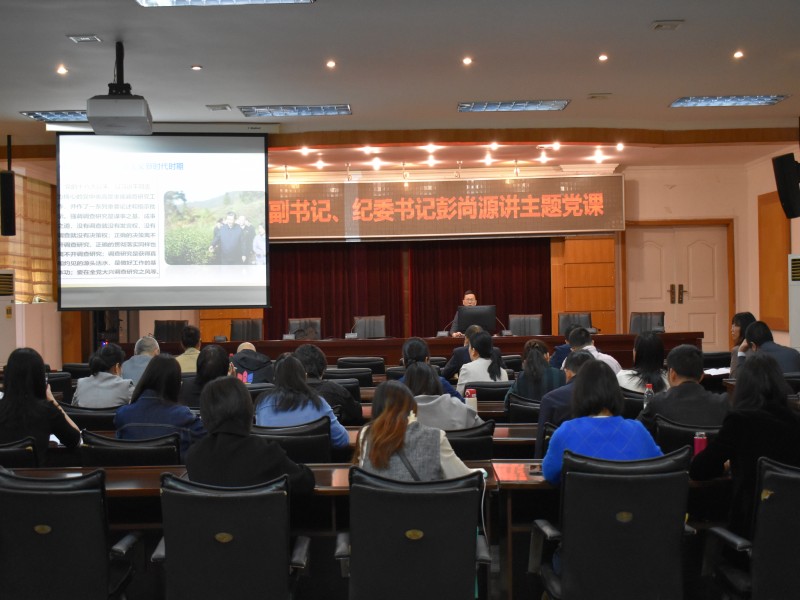 党课上,彭尚源结合我校纪检监察工作的实际,一方面运用历史思维从新民主主义革命时期、社会主义革命和建设时期、改革开放和社会主义现代化建设时期以及中国特色社会主义新时代四个时期讲述了毛泽东、邓小平、江泽民、胡锦涛、习近平是如何开展调查研究的;另一方面突出问题意识从宏观和微观两个层面讲清了纪检监察干部队伍为什么要开展调查研究,并从《关于在全党大兴调查研究的工作方案》 和《调研工作务求“深、实、细、准、效”》中提炼出我校纪检监察干部开展调查研究的工作思路。
