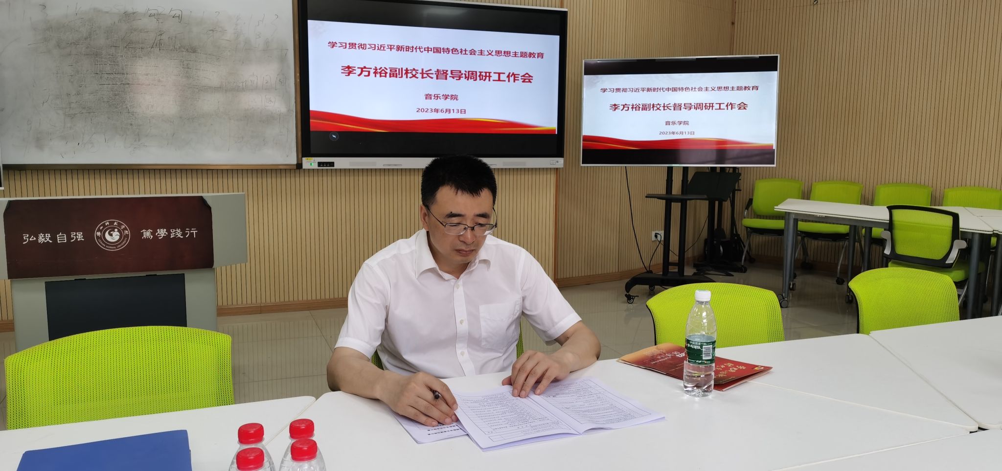 会上,音乐学院党委书记罗谊恒汇报了学院主题教育工作的整体推进情况。李方裕在听取汇报并认真查阅了音乐学院主题教育相关材料的基础上,结合音乐学院工作实际,对深入开展主题教育工作提出了指导意见和要求:一要深刻领悟主题教育的重要意义,牢牢把握“学思想、强党性、重实践、建新功”的总要求,努力在以学铸魂、以学增智、以学正风、以学促干等方面取得新进展、新成效。二要坚持全面系统学习,做到整体把握、融会贯通,结合音乐学院的学科特点,深刻把握党的创新理论,推动习近平新时代中国特色社会主义思想融入专业建设和育人实践,把学习成果转化为推动学院学科建设、人才培养、科学研究、社会服务的生动实践。三要认真梳理开展主题教育以来音乐学院在项目引领、团队建设、培养方案修订、学生成果展示等方面推进情况,对主题教育中的好做法好经验,及时以制度形式固定下来,形成常态长效机制。