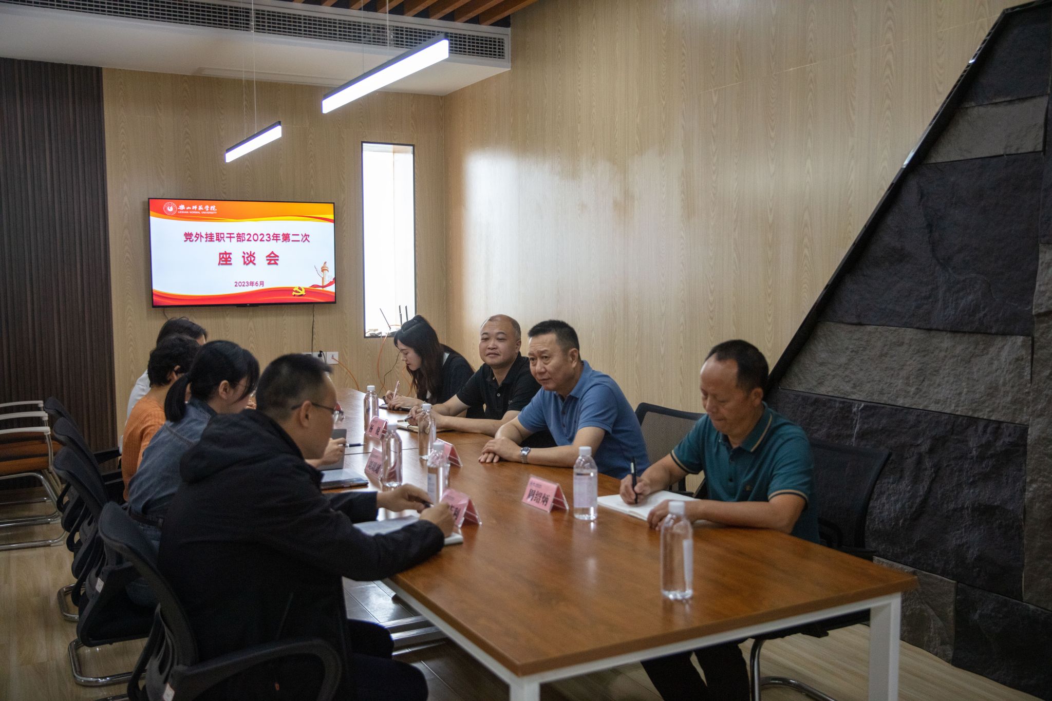 本网讯(文图/黄渝婷、胡瑞芯)6月15日上午,我校年内第二次党外挂职干部座谈会在弘毅楼校友之家会议室召开。校党委副书记、工会主席陈立志,校党委常委、党委宣传部、党委统战部部长杨锐,副部长周绍炳,统战科科长黄渝婷、4名党外挂职干部参加了座谈会。会议由杨锐主持。
