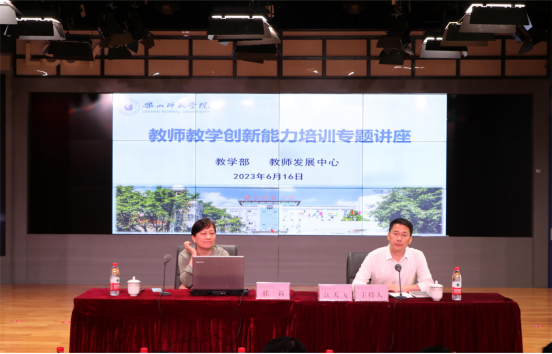 本网讯(文/杨玉箫、代丽 图/刘怡君)根据学习贯彻习近平新时代中国特色社会主义思想主题教育工作要求,聚焦人才培养质量,加强教学研究与改革,促进本科教育高质量内涵发展,6月16日下午,教学部、教师发展中心邀请到西南交通大学高等教育研究院院长郝莉教授作题为“促进学生深层学习的课程教学设计与教学创新”专题培训会,各教学院院长、副院长和骨干教师代表参加了此次培训。培训会由党委常委、副校长汪天飞主持。