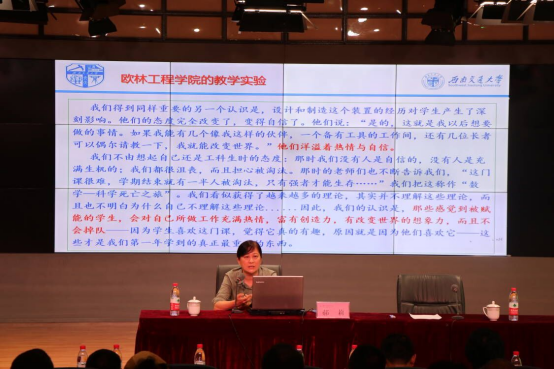 郝莉结合高校教育教学研究与实践,从高校课程教学改革的思考、促进深层学习的教学原理与教学策略、课程质量标准等三方面进行了分享和交流。报告结合案例,重点分析促进学生深层学习的7个教学设计原则,阐释了如何在教学中充分体现以学生为中心,激发学生学习兴趣等内容。郝莉指出,课程创新的重点在于找到创新点,重新设计大概念讲解、课堂研讨、项目式学习、激活旧知以及考试改革等,形成课程特色。