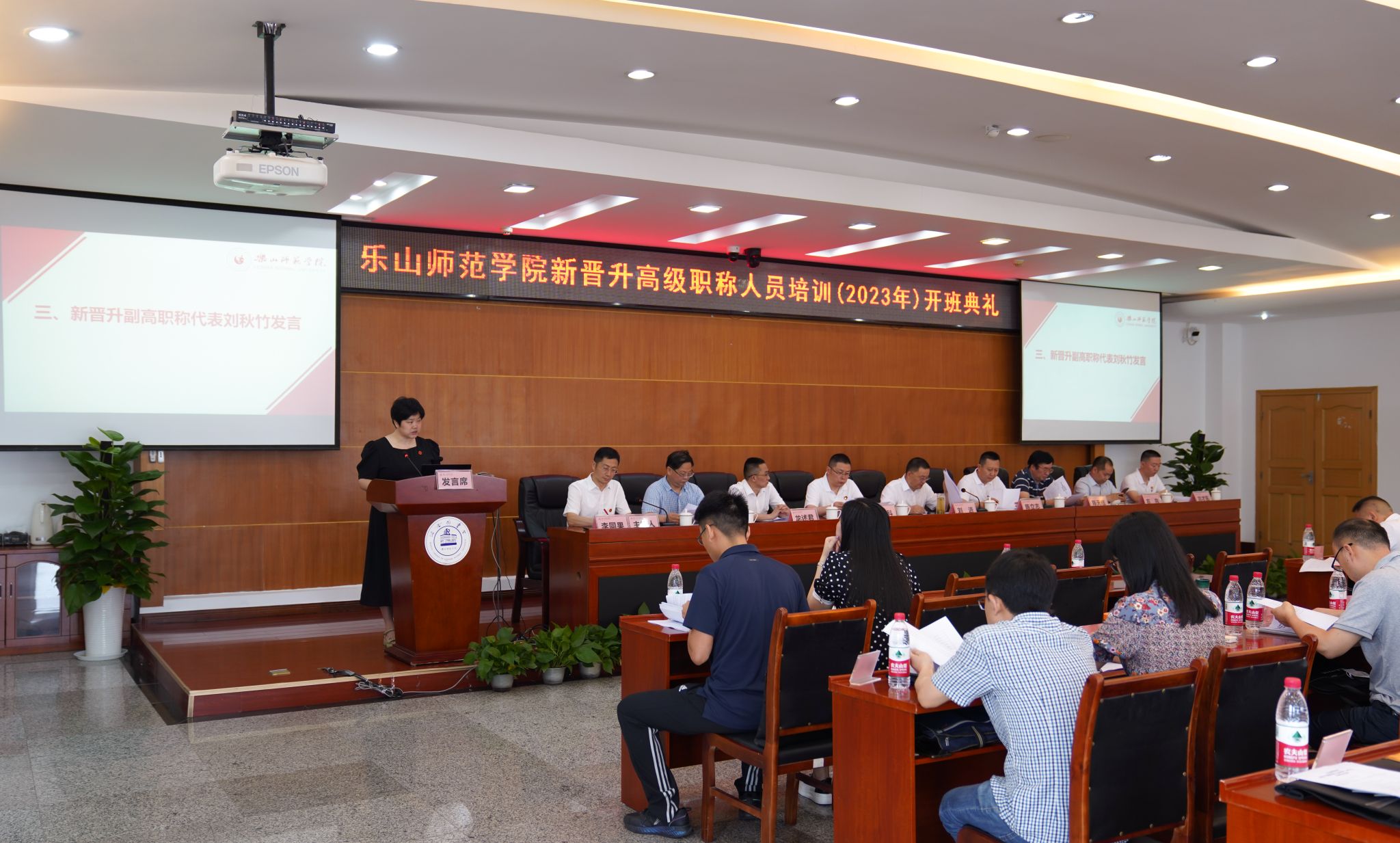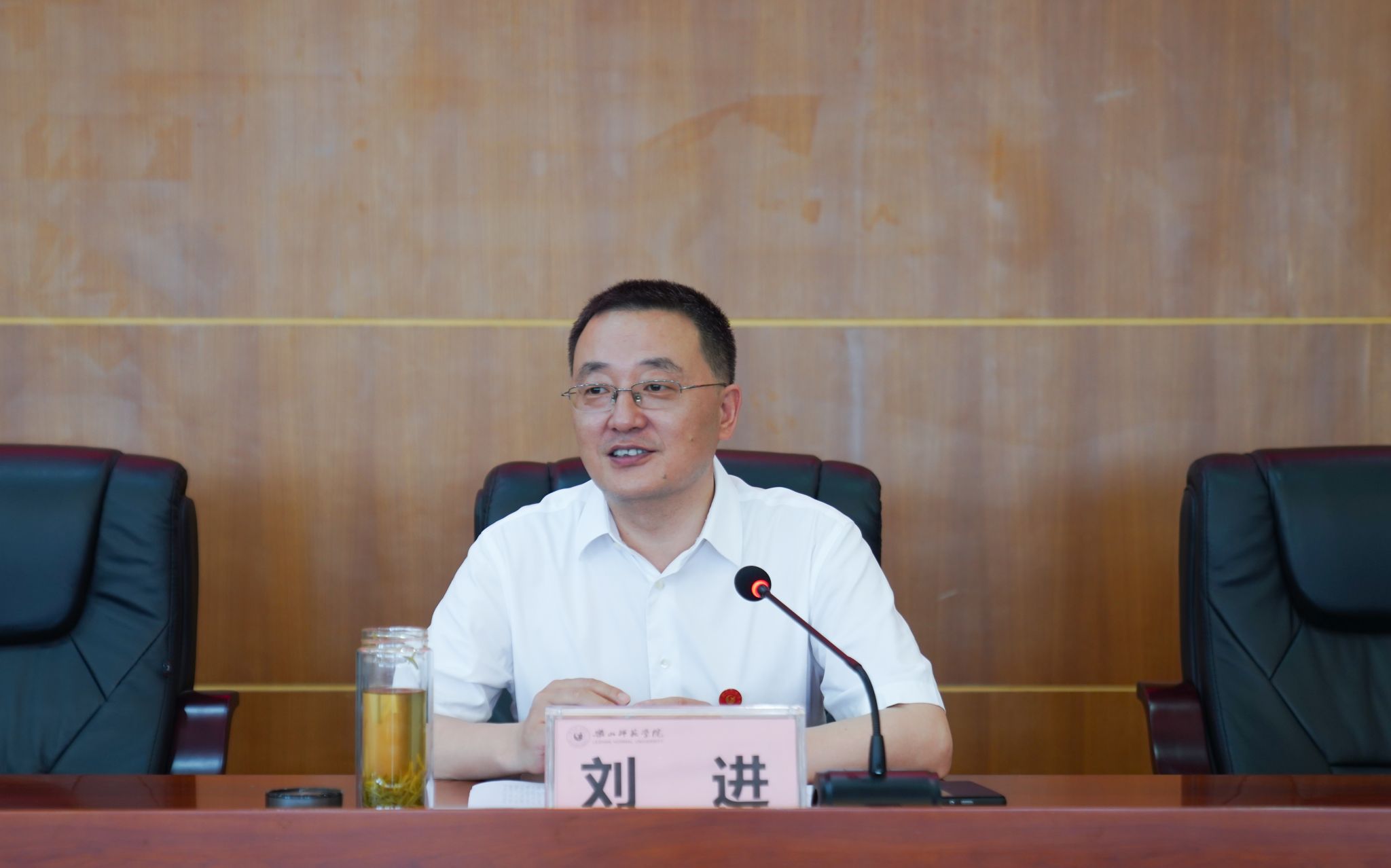 首先,刘进分享了个人的成长经历和自身的职业发展轨迹,深入分析了新时代高校教师的使命担当;随后,带领大家回顾了学校从乐山高师班到乐山师专再到乐山师范学院的发展历程,总结了乐山师范学院教授群体的角色定位,即要做一名教学的行家里手、科研的领军人才、社会服务的带头人。