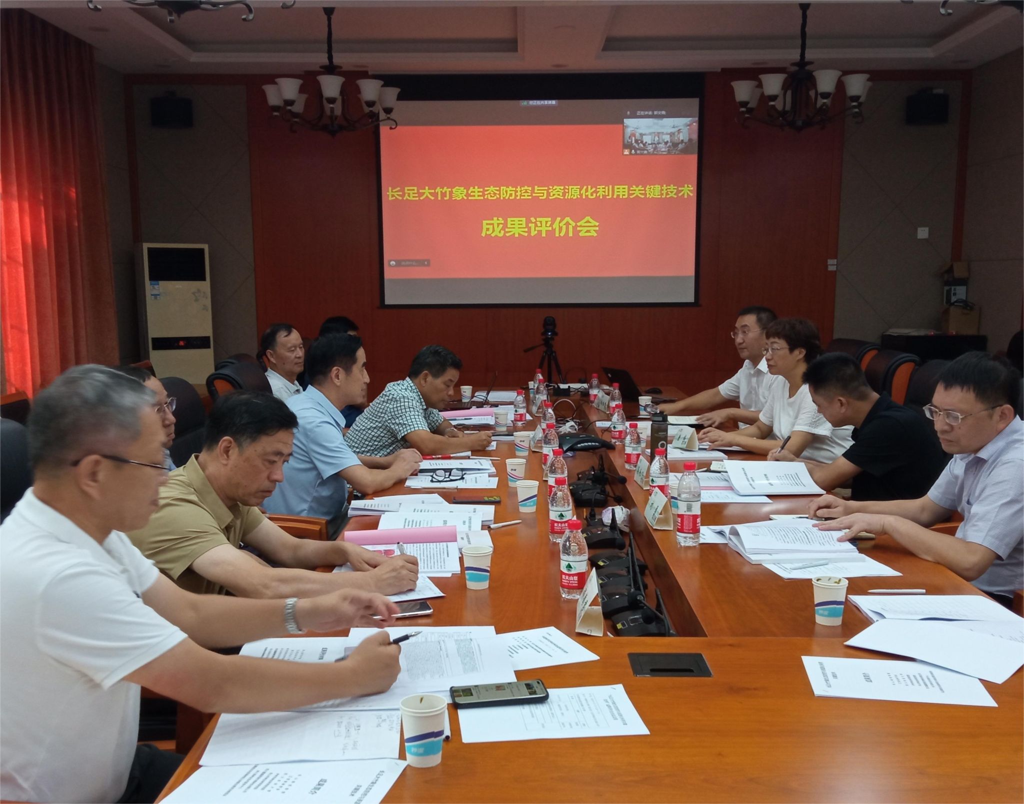 会上,竹类病虫防控与资源开发四川省重点实验室主任杨瑶君教授汇报了项目组的研究工作和成果,专家组听取并审阅相关资料,经过质询和充分讨论,最后一致认为:“长足大竹象生态防控与资源化利用关键技术”成果内容丰富,创新性强,应用前景广阔,评价委员会一致认为,该成果达到国际先进水平。