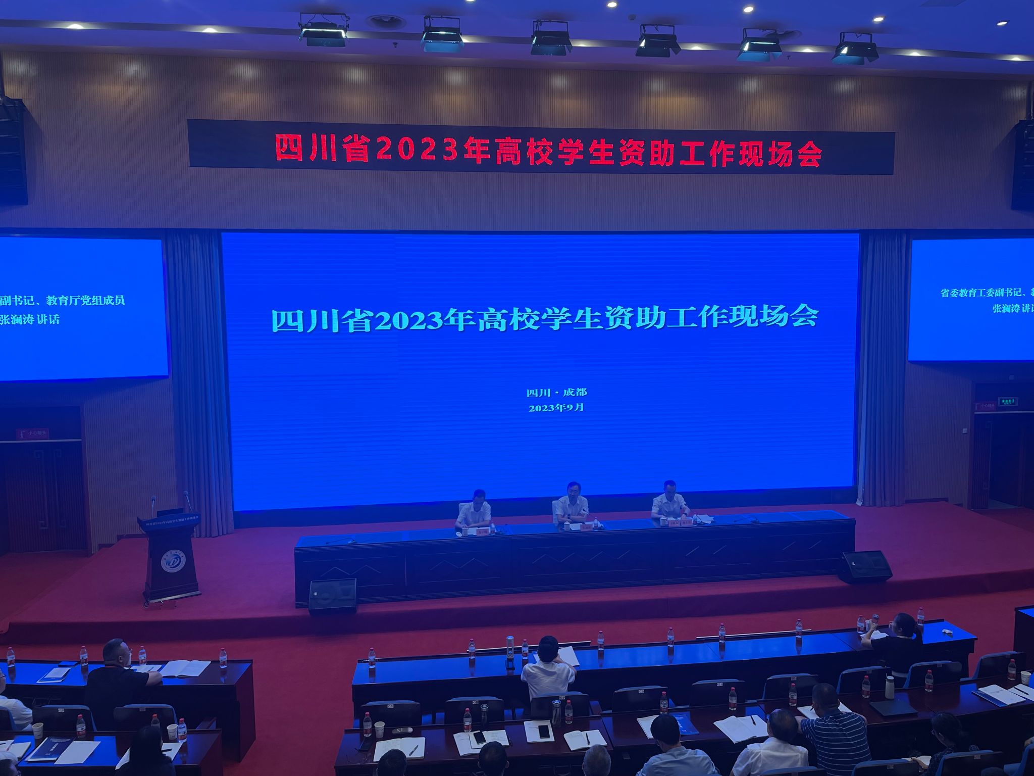 本网讯(文/吕汶锦 图/王耀)2023年9月10日,四川省2023年高校学生资助工作现场会暨四川省高等学校思想政治教育研究会学生资助工作分会成立大会在西南石油大学举行。教育部全国学生资助中心党委书记、主任陈希原,教育部全国学生资助管理中心党委委员、副主任陈淑梅,省委教育工委副书记、教育厅党组成员张澜涛,四川省学生资助管理中心主任刘士喜,以及全省138所高校的分管校领导、学生工作部负责人参加会议。我校党委常委、副校长李朝晖,党委学生工作部部长黄显刚,学生资助中心主任王耀出席了此次会议。