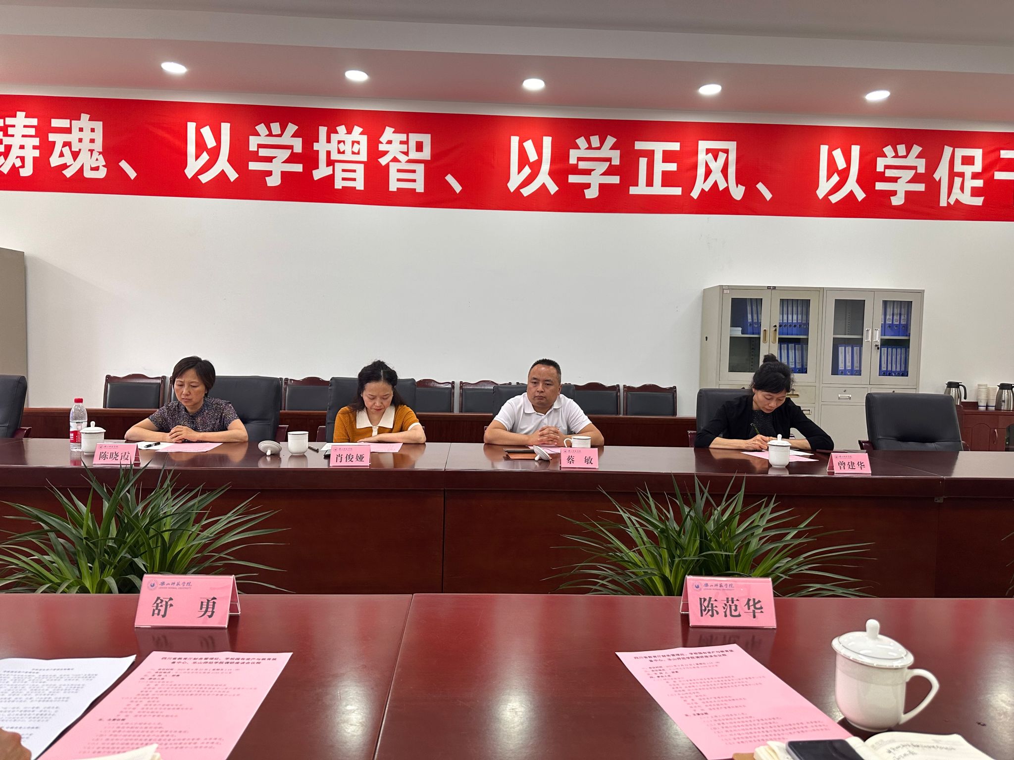 本网讯(文/刘诗宇 图/李博)9月22日下午,教育厅财务管理处四级调研员蔡敏、省学校国有资产与教育装备中心资产管理中心主任肖俊娅一行到我校就国有资产管理工作进行专题调研,并在学校弘毅楼210A会议室举行调研座谈会。校党委常委、副校长陈范华出席会议,学校国有资产管理处、信息技术与实验保障处、科研部相关人员参加会议,会议由国有资产管理处处长舒勇主持。