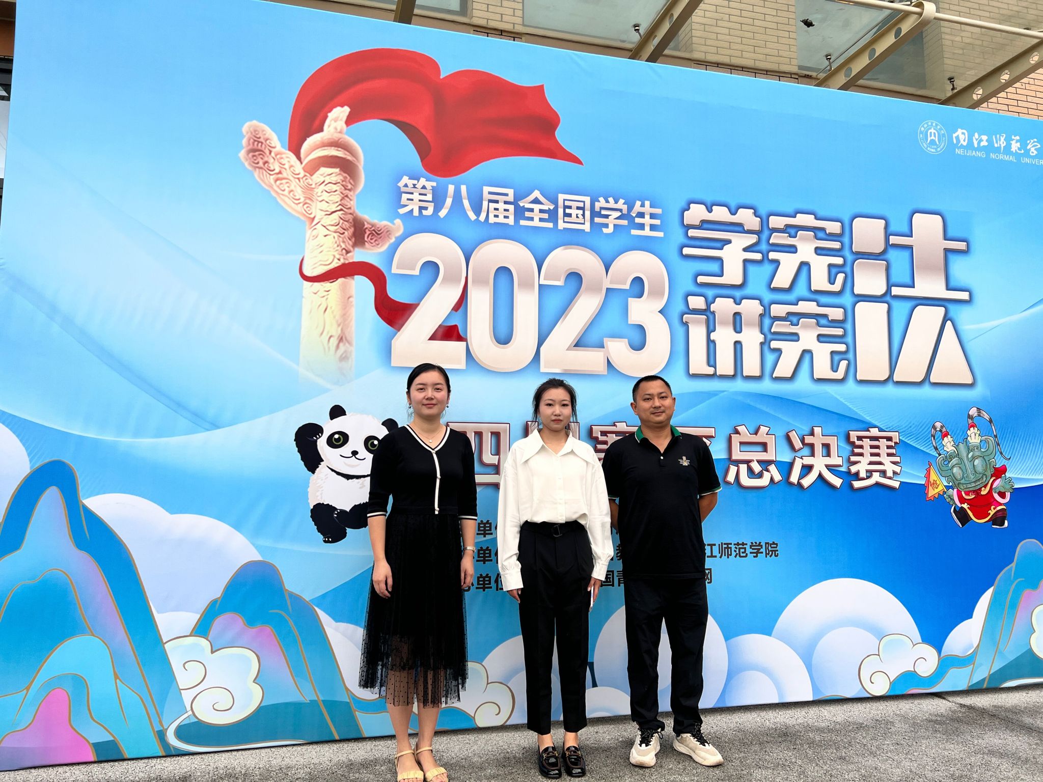 本网讯(文/杨兵 图/翟雅媛)2023年9月23日至24日,由四川省教育厅主办,青少年法治教育中心、内江师范学院共同承办,教育部全国青少年普法网协办的四川省第八届学生“学宪法 讲宪法”活动总决赛在内江师范学院举行。本次比赛高校组共有全省137所高校的300余名选手参加7个片区赛的选拔,最终有33所高校的45名选手在省级决赛的赛场上展开激烈角逐。我校学工部部长黄显刚、旅地学院党委副书记冉勇、法管学院党委副书记翟雅媛带队,法管学院21级法学专业学生王梦瑶、22级法学专业吴秋谕两位同学以优异的成绩作为第六片区代表参加了本次决赛。