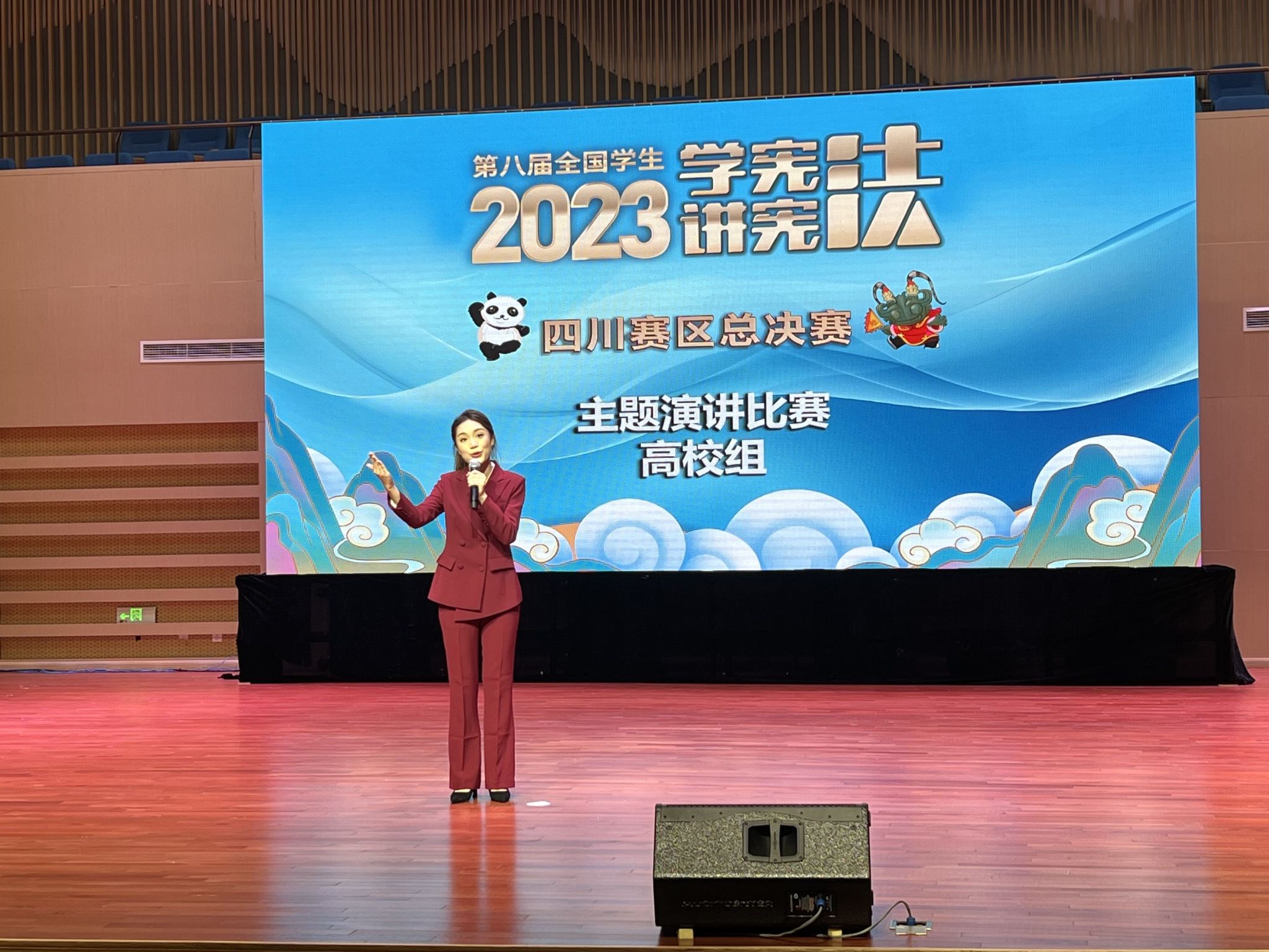 第八届全省学生“学宪法 讲宪法”活动省级决赛分为演讲比赛和知识竞赛两个赛项,设小学、初中、高中和高校四个组别,内容主要聚焦宪法知识,包含民法典、未成年人保护、预防未成年人犯罪、职业教育等相关法治知识。素养竞赛组,选手现场答题,赛题聚焦宪法等法律知识,经过激烈角逐,王梦瑶同学荣获四川省三等奖。演讲比赛组,选手按照抽签顺序依次上台演讲,吴秋谕同学以饱满的热情与昂扬的精神状态围绕宪法精神展开演讲,一路过关斩将,获得四川省二等奖的好成绩,也是近年来我校自参加该项比赛以来取得的最好成绩。