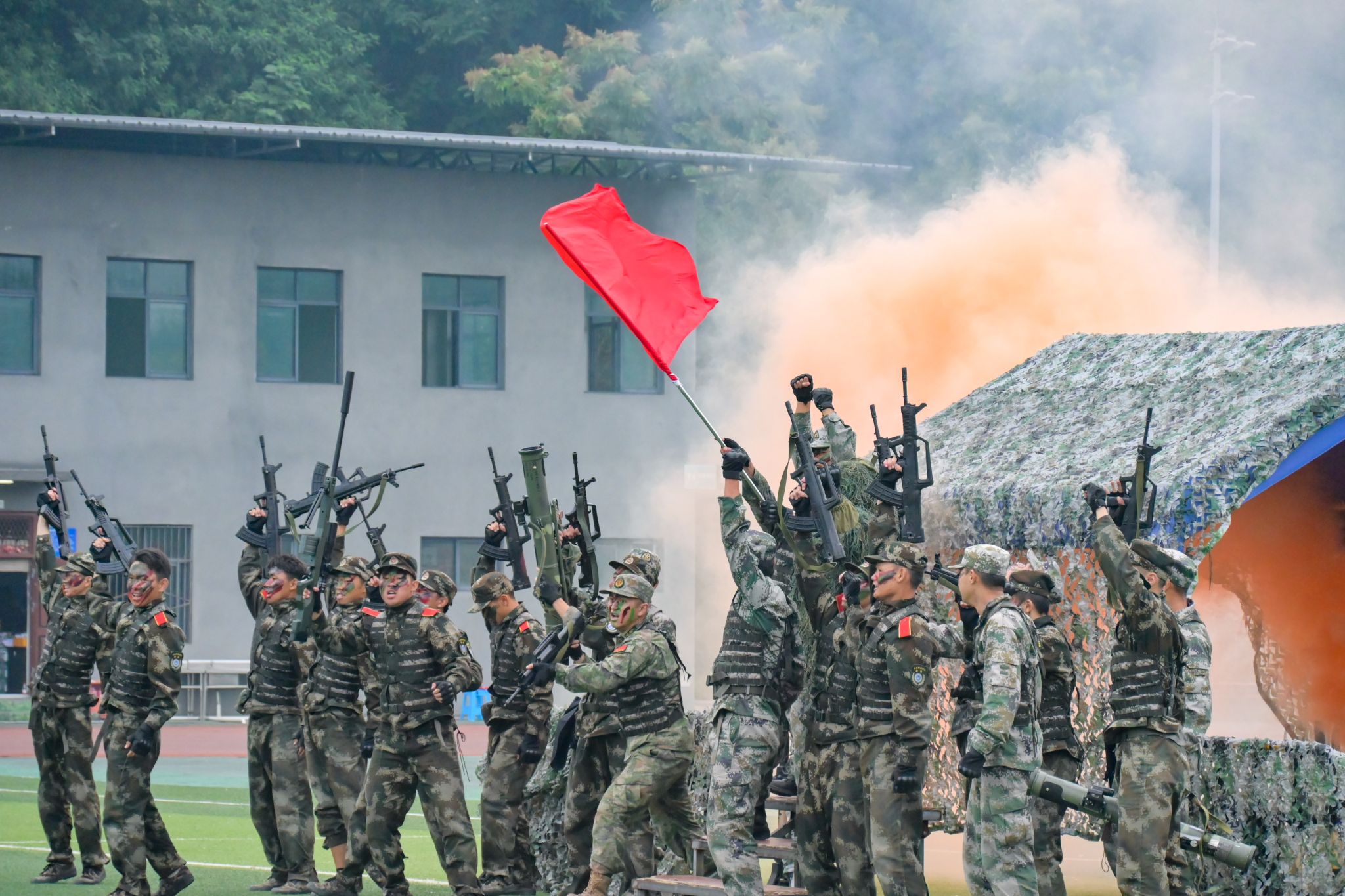 红旗飘扬,国歌嘹亮。校旗飞舞,青春激昂。迷彩青春扬斗志,意气风发少年行。一声令下,分列式开始。雄壮激昂的音乐响起,3971名新生踏乐而来,英姿飒爽,步履铿锵。