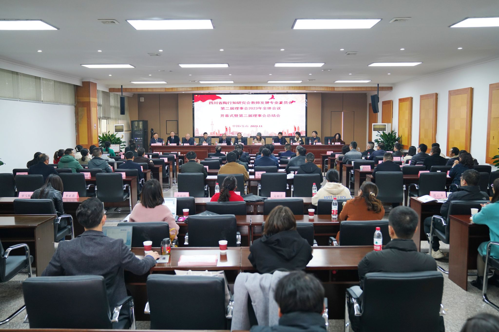 本网讯(文/吴永胜、贺夏莲 图/梁晨、巴玉宁)2023年11月17-18日,由四川省陶行知研究会教师发展专业委员会主办,乐山师范学院教育科学学院和四川乡村教育发展研究中心等承办,北京师范大学出版社有限公司协办的第二届理事会2023年全体会议暨学术研讨会在乐山师范学院顺利召开。本次研讨会主题为“智能革命、人口趋势与教育变革:新时代的教师教育转型问题”。来自乐山师范学院、成都师范学院、宜宾学院、四川师范大学等高校专家学者以及省内中小学和幼儿园教师代表总计100余人参会。