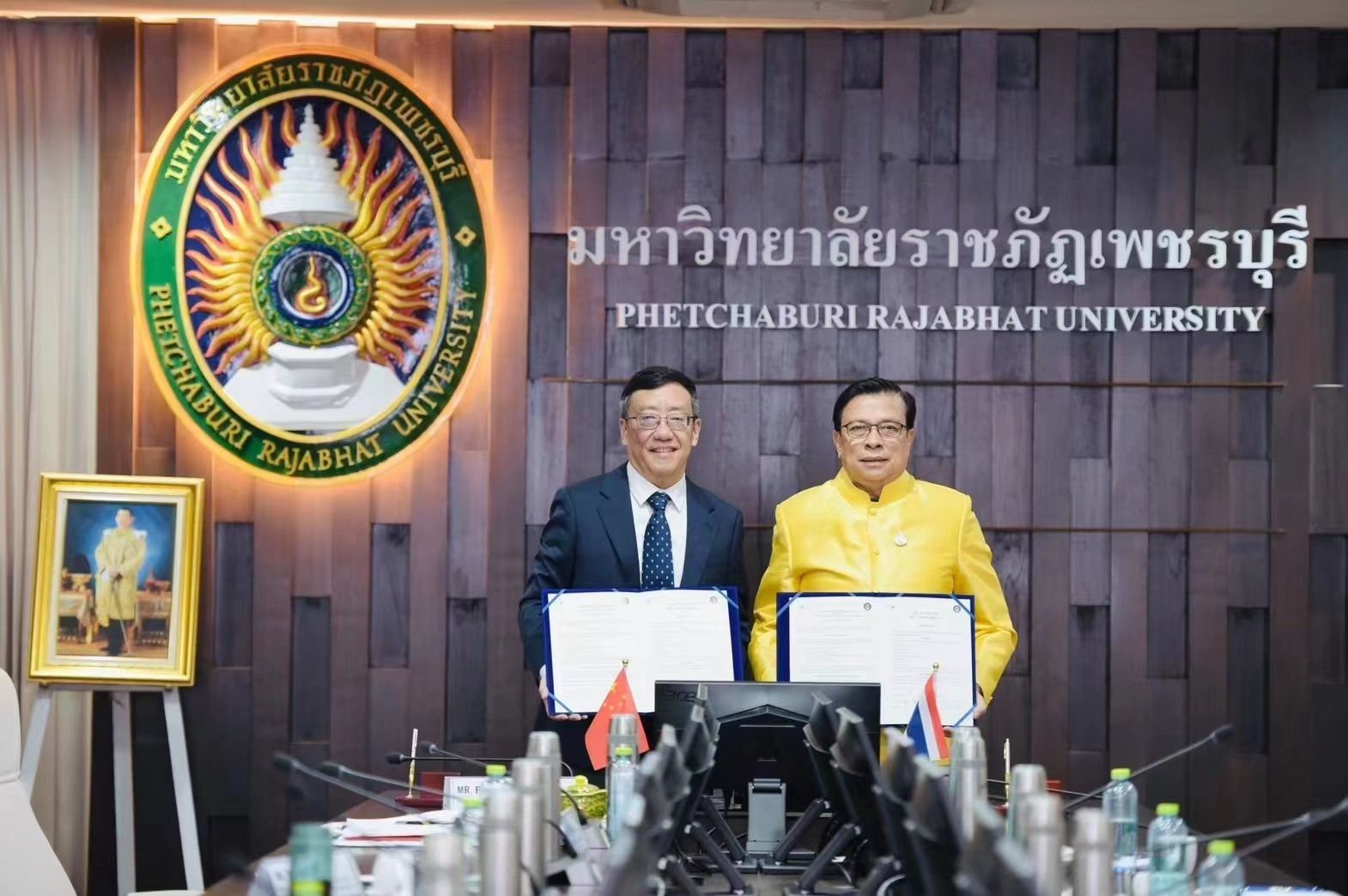 在泰国访问期间,我校代表团拜访了坦亚武里皇家理工大学、帕纳空皇家理工大学、碧武里皇家大学、吞武里皇家大学,与碧武里皇家大学、吞武里皇家大学签署了合作备忘录。访问期间,代表团与泰国高校进行了会谈、调研,观摩了课堂教学,深入了解泰国高等教育发展现状与特色。胡丹在访问期间表示,中泰共建“一带一路”以来,新的友好合作种子生根发芽,两国合作不断走深走实、结出硕果,在继承传统友好的基础上,希望双方进一步加强在高等教育领域内的全面合作。