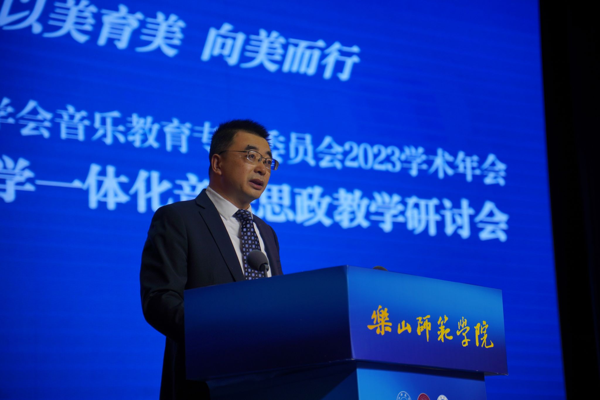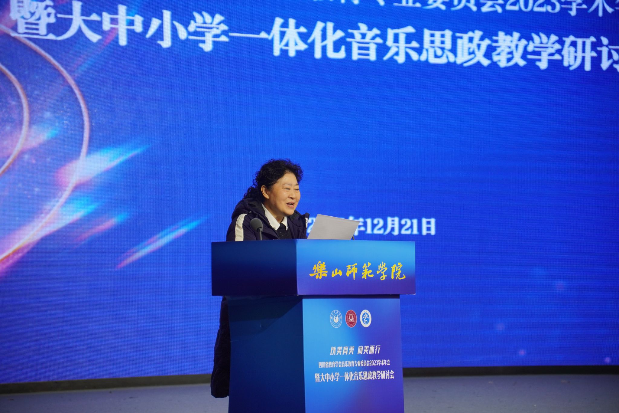 本网讯(文/吴映春 图/闫志成)为深入学习贯彻党的二十大精神,落实中共中央办公厅、国务院办公厅印发的《关于全面加强和改进新时代学校美育工作的意见》要求,进一步深化大中小学思政课一体化内涵建设,加快推进我省大中小学音乐思政课一体化共同体建设,12月20日至21日,四川省教育学会音乐教育专业委员会在乐山师范学院隆重举行2023年度学术年会暨大中小学一体化音乐思政教学研讨会,参会嘉宾有四川省教育学会第四届音乐教育专业委员会理事长胡郁青,秘书长牛琴,乐山师范学院党委常委、副校长李方裕,以及四川省教科院、四川省大中小学校和四川省各地市(州)共计120余代表。