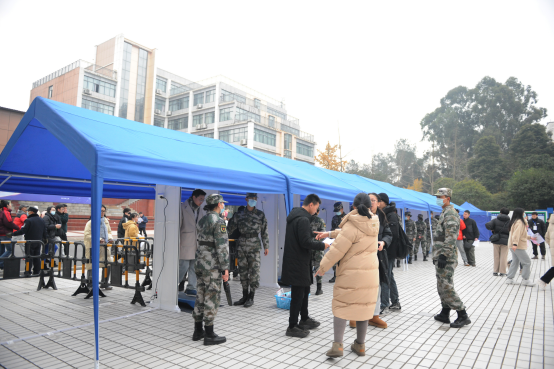 为服务考生,给考生手机等随身携带物品存放提供便利。我考点挖掘已有考试资源,在考场封闭区域外的北校区运动场设置考生物品存取处,布置45顶帐篷并分别配备防雨防潮垫,上百名志愿者进行信息咨询、手机存放、秩序维护等服务工作,热心主动地在第一时间帮助考生快速顺畅地进行存手机、安检、入场。