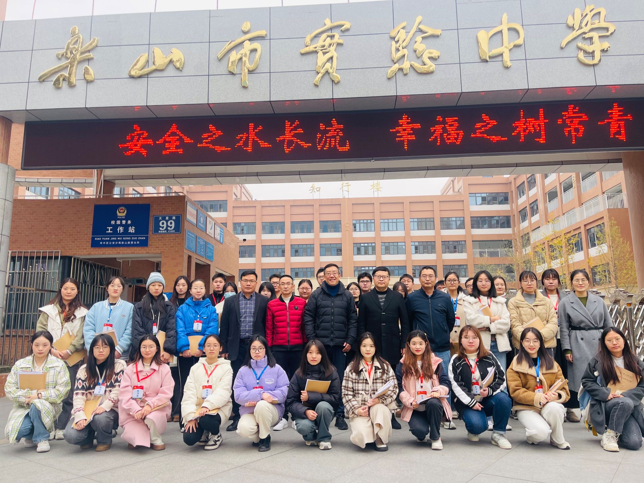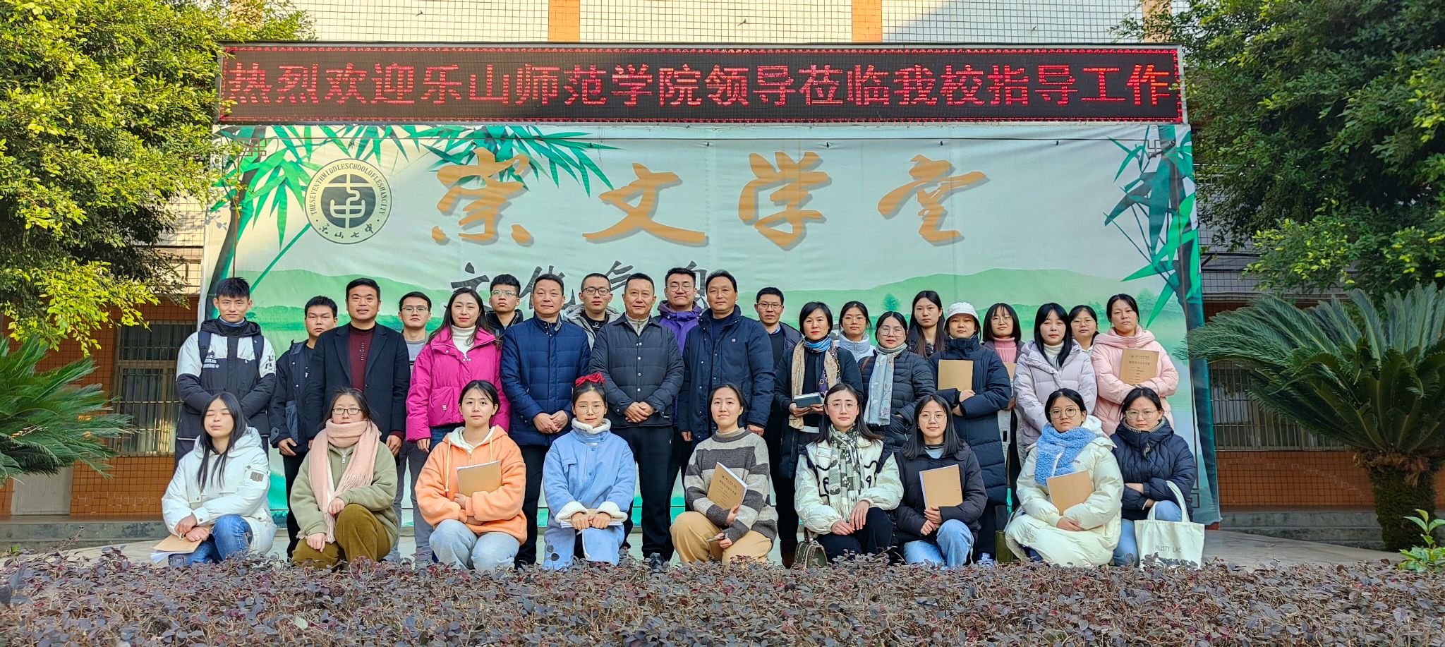12月18日,学校党委副书记陈立志带队对2024届师范生教育实习工作进行检查指导,看望了乐山市第七中学、乐山市更生学校等基础学校的实习生,并与基地学校领导进行了交流、座谈。