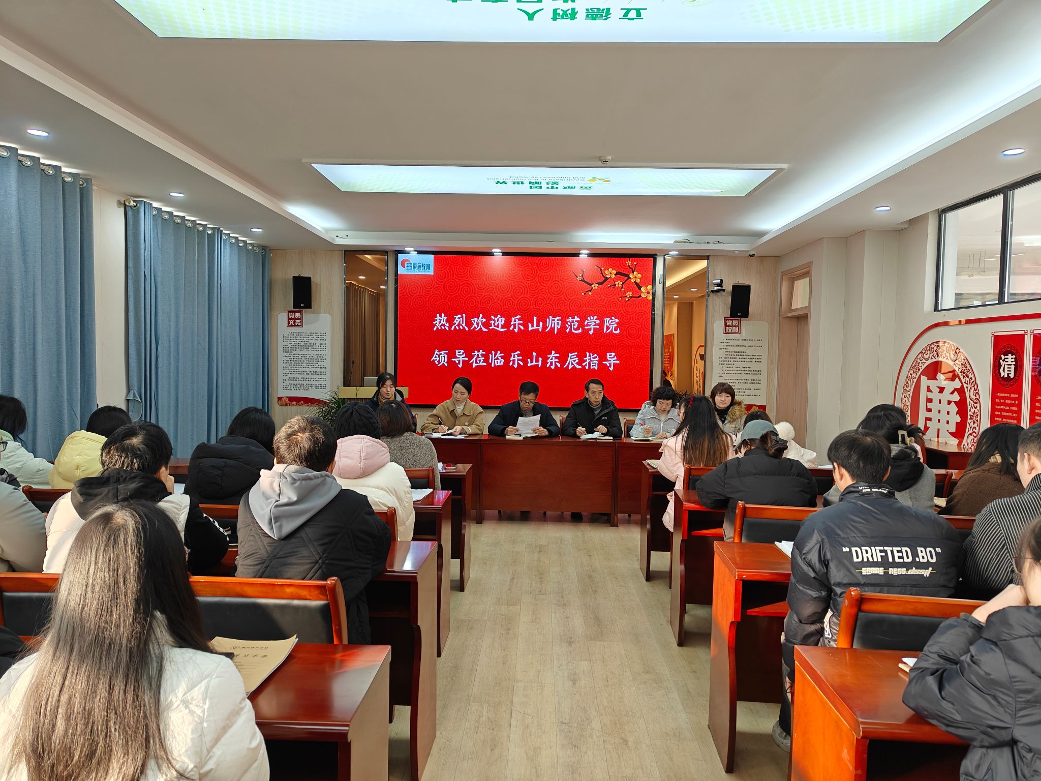 汪天飞代表学校感谢实习基地学校长期以来对我校人才培养的鼎力支持,希望双方进一步深化课题研究、教研教改、师范生人才培养、就业从业等方面的合作,共谋发展。实习基地学校领导纷纷表示赞同,并介绍了实习生管理制度及实习生表现情况,期待未来能够有更多的乐师学子加入他们的学校,有更深层次的合作。
