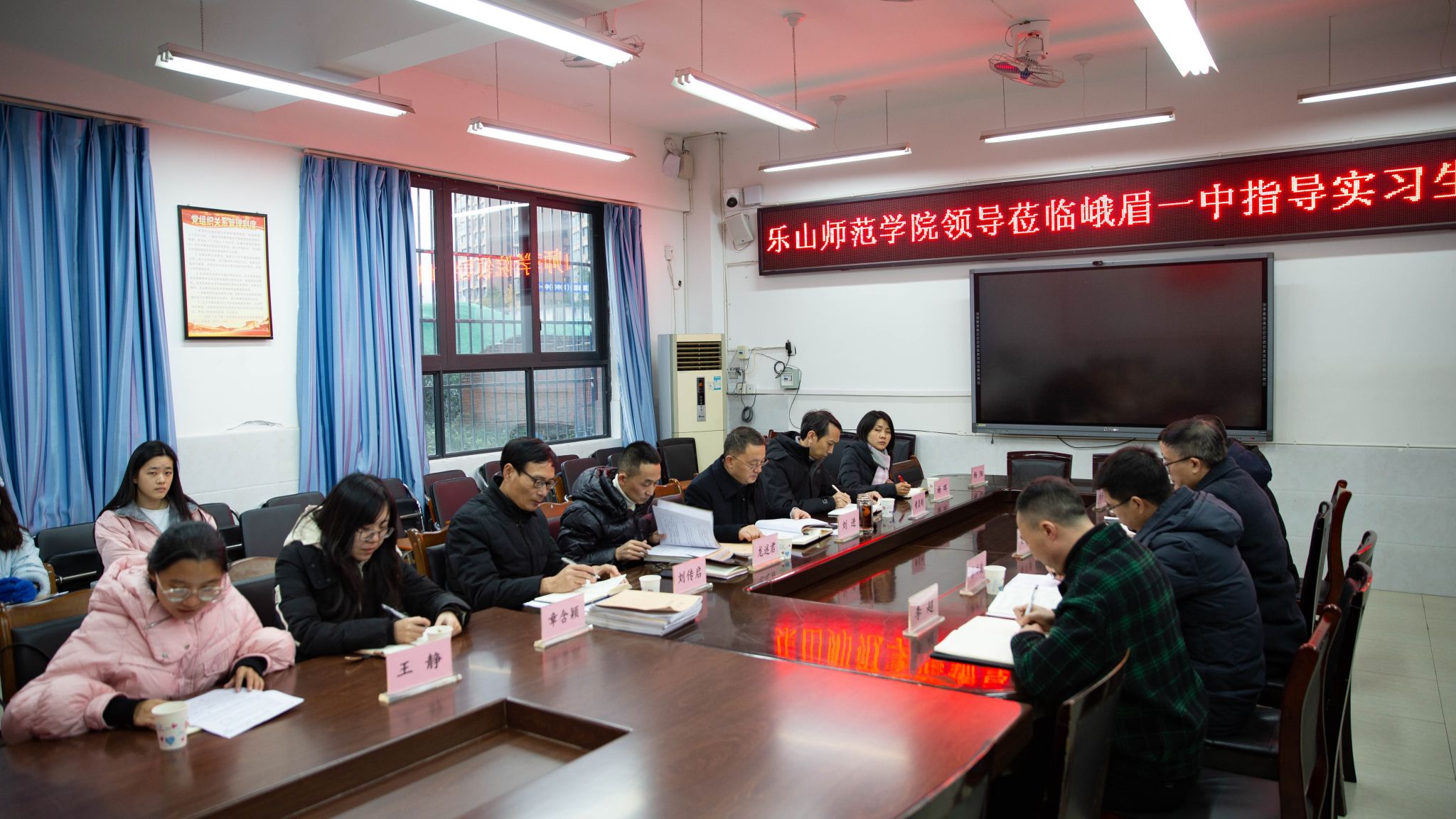12月13日,学校党委书记胡丹带队前往乐山市外国语学校、乐山市实验中学、乐山市草堂高级中学巡视检查,与实习基地学校领导、指导教师、实习学生进行座谈交流。