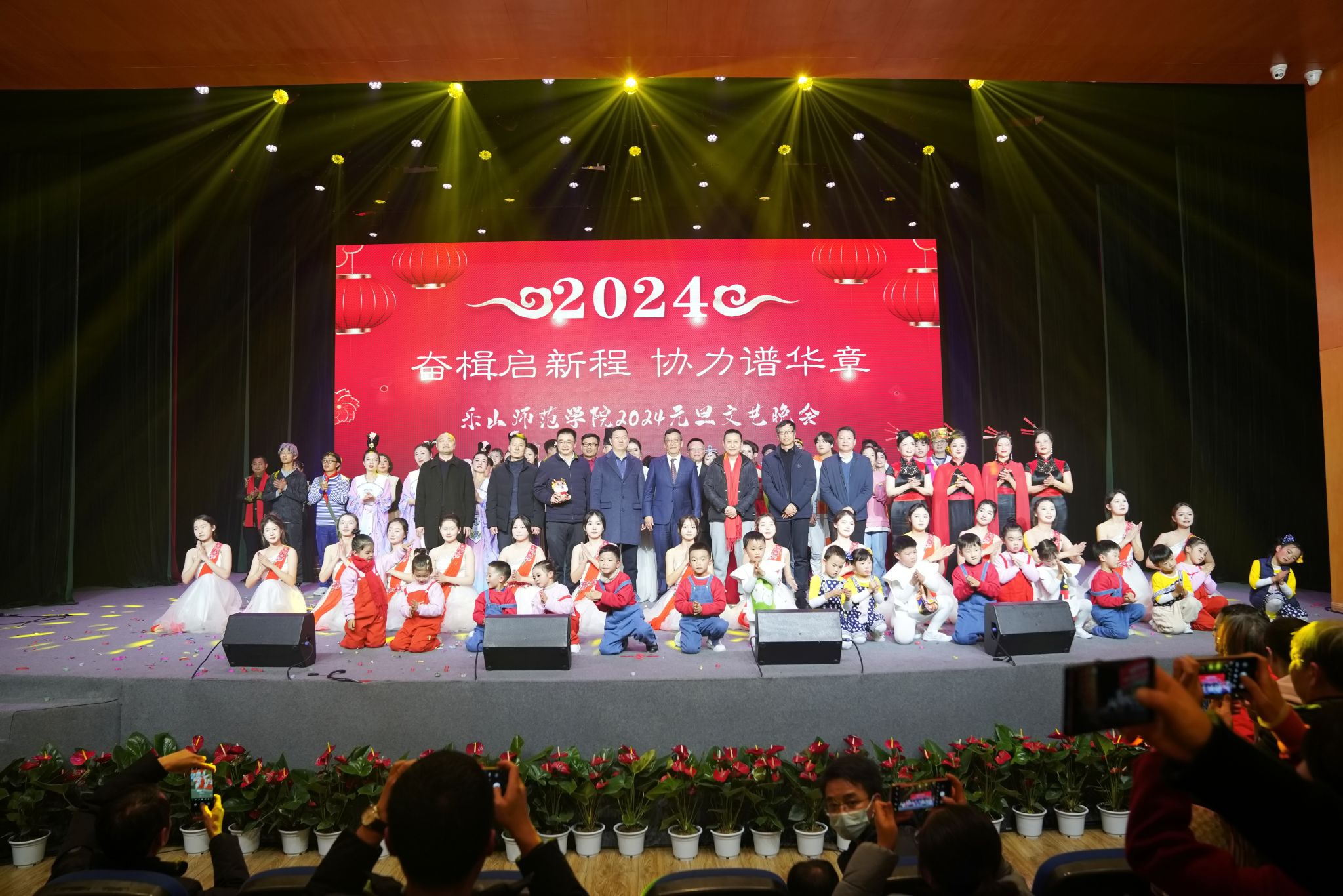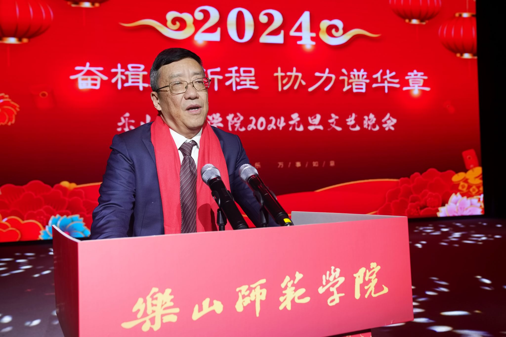 胡丹说,回望2023年,全体乐师人锚定“1329”发展战略目标,用责任与担当、实干与奉献,奋力谱写学校高质量发展新篇章。他指出,这一年的乐师人牢记习近平总书记来川视察殷殷嘱托,扎实开展学习贯彻习近平新时代中国特色社会主义思想主题教育,坚持思想伟力铸魂,党建引领激发动能;这一年的乐师人有的入选省学术和技术带头人,有的获评省“最美教师”,有的在川渝师范生教学能力大赛上获奖,有的勇夺全国“挑战杯”大赛奖项,有的在省大学生艺术展演活动中展现乐师风采。
