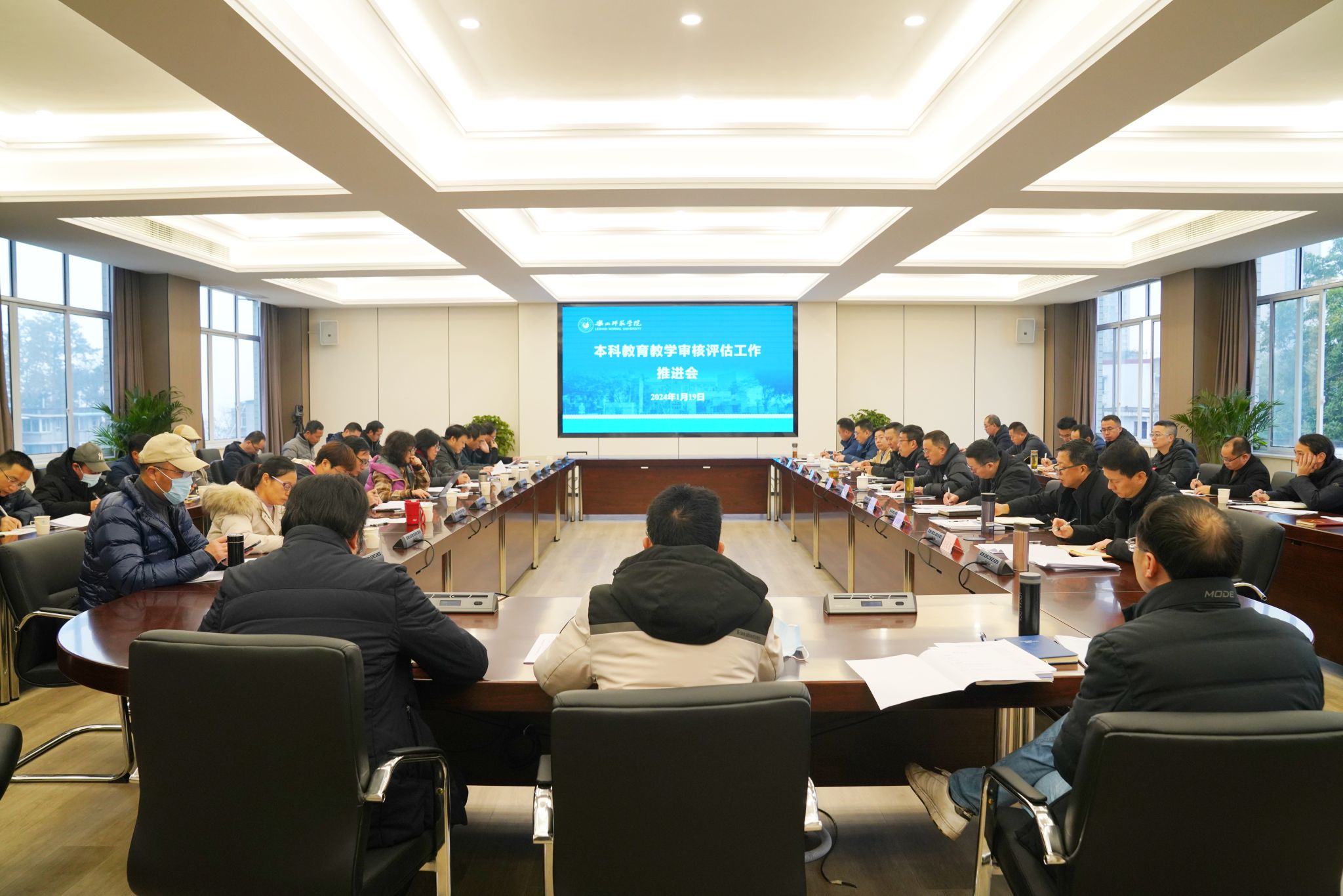 本网讯(文图/梁晨)1月19日,我校在弘毅楼第一会议室召开新一轮本科教育教学审核评估工作推进会,对本科教育教学审核评估迎评工作进行再部署、再动员。