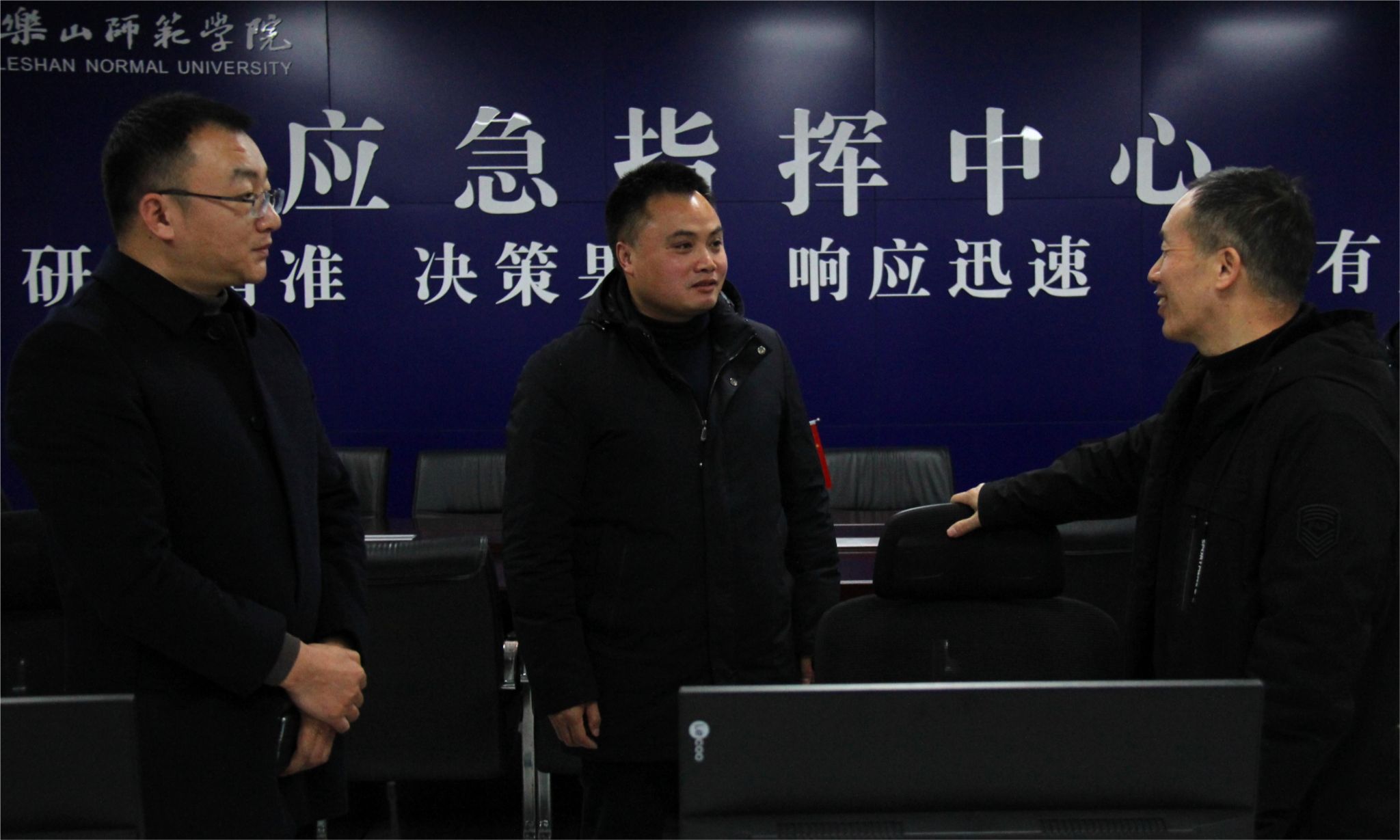 本网讯(文/何甜图/严兵)为进一步落实消防安全工作责任,全面排查整治消防重点部位安全隐患,1月24日,四川省教育厅一级巡视员胡卫锋、教育厅离退处一级主任科员许丛琪、省教育信息化与大数据中心办公室副主任苟曌一行莅临我校开展安全稳定督导检查工作,乐山市教育局相关领导陪同检查,党委常委、副校长江滔参与检查。